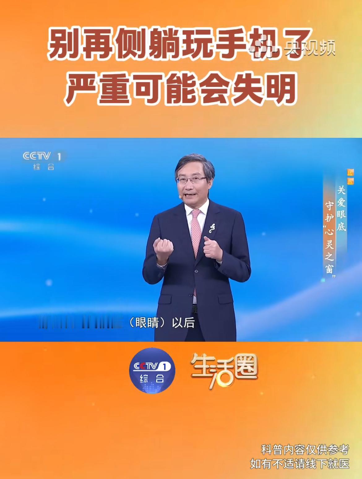 大家有没有在晚上侧躺着玩手机的习惯呀?最近有个热点,说这样玩手机严重了可能会失明,是不是听着就挺吓人的。 你看哦,很多人睡前都喜欢侧躺着刷会儿手机、追个短剧,觉得这是放松的时刻。但你知道吗,长期这么侧卧着熬夜用眼,对眼睛伤害可大了。首先呢,容易引发干眼症和视疲劳,眼睛会又干又涩,还容易疲劳。更关键的是,侧躺的时候会单侧挤压眼球,时间长了,两只眼睛看东西就不均衡了,视力差距会越来越大。 就像有个例子,有人长期侧躺玩手机,结果眼睛出了大问题,差点失明。这可不是危言耸听。咱们的眼睛其实很脆弱,侧躺时一只眼成为主视眼,这只眼的度数会严重加深,两只眼的屈光就会参差,加重视觉平衡的失调。而且,侧躺对眼睛的挤压,还可能导致结膜下出血,要是上了年纪的人,甚至可能引发闭角型青光眼发作,这些情况都可能快速出现失明的症状。 所以啊,别再把“睡前刷会儿手机”当成习以为常的事了,这可能是在悄悄伤害我们的眼睛。为了咱们的视力,还是赶紧摒弃侧躺玩手机的习惯吧,别让一时的放松变成了对眼睛的长期伤害。 来源:央视频生活号