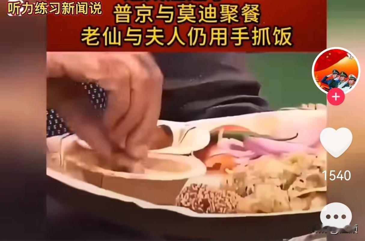 莫迪请普京在家吃饭直接上手抓… 作为25年的老熟人,莫迪在普京访印当晚,在其新德里官邸(7 Lok Kalyan Marg)为普京举办了一场意义非凡的私人晚宴。 晚宴既有印式微辣鱼、烟熏海鲜、莫卧儿咖喱等本土特色菜品,又贴心搭配了开菲尔酸奶、新鲜沙拉和低糖奶酪甜点等清淡食物,充分兼顾普京的健康饮食偏好。这场晚宴足足持续了3小时,直至当晚10点后才结束。晚宴尾声,莫迪还将俄语版的《薄伽梵歌》作为礼物赠予普京。 媒体注意到,两人用餐时,老仙与夫人还是用手抓饭吃