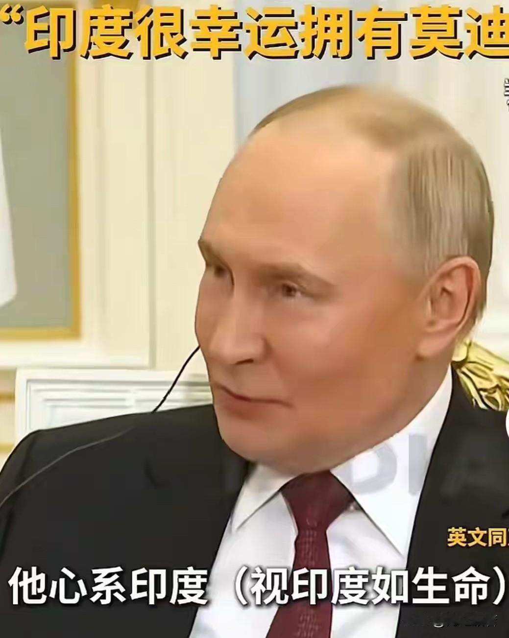 普金大帝太会说话了。 俄罗斯总统普京访问印度,在回答印度记者提问时,情商太高了。说到莫迪,普京说印度很幸运拥有莫迪,他心系印度,意思是视印度如生命。一下子说到点子上,莫迪听了一定乐得睡不着觉了。要说普京聪明呢,知道印度就喜欢这一套,一下子拉进距离,感觉印俄友谊地久天长了。 俩美女记者也乐得合不拢嘴,双双翘着二郎腿,高高在上的样子,一点不谦虚,这也是一种尊重人的表达方式吗,搞不懂了,不知普京大帝有何感想。