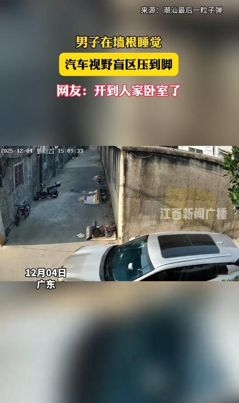 “冤不冤?”12月4日,广东潮汕,一男子躺在巷子口睡觉,这时一辆汽车转弯进巷子,但司机没看到地上的男子,再加上前方有电动车挡道,司机只能尽量贴墙走,结果就压到了男子的脚,男子瞬间惊醒!网友:把车开进人家卧室了? 司机朋友应该都知道,无论轿车还是越野车,都存在一定的视野盲区,在这个范围内司机是看不到东西的,所以上车前才要绕车检查一周,变道或者转弯都要小心。 这天下午,一辆汽车驶进了巷子里,或许前方是个死胡同,司机很快就把车倒了回来,打算拐进小巷子里。 但是司机没有发现的是,巷子口有人躺在地上睡觉,虽然司机转弯转得很小心,但由于男子位于司机的视野盲区,所以司机一点都没有察觉,就这么在男子脚上压了过去! 男子感受到脚部位传来的剧痛后,瞬间就醒了过来,连忙用脚踹车身并大叫,司机这才意识到压到了人,于是又连忙倒车。 脱困后,男子斥责司机怎么开的车,有个人都看不见吗! 不少网友都觉得司机非常冤,巷子又不是私人道路,哪能在这里睡觉呢,而且男子所在的位置刚好处于司机的盲区,所以不能全怪司机,男子也要承担一定的责任。 大家觉得这件事的责任在谁? 信息来源:《男子在巷子转弯处铺席睡觉,被路过车辆碾压到脚疼痛大叫,爬起来后质问司机:你干啥!》玉林晚报