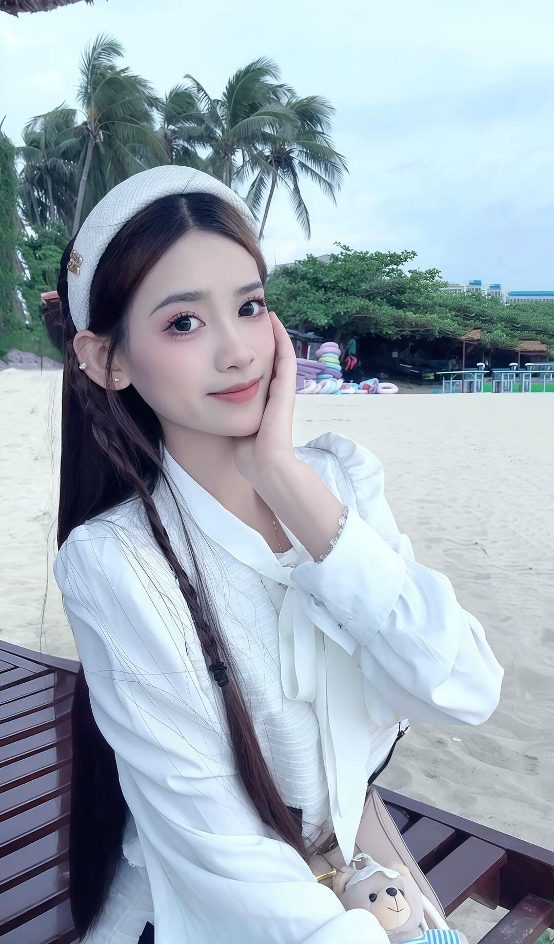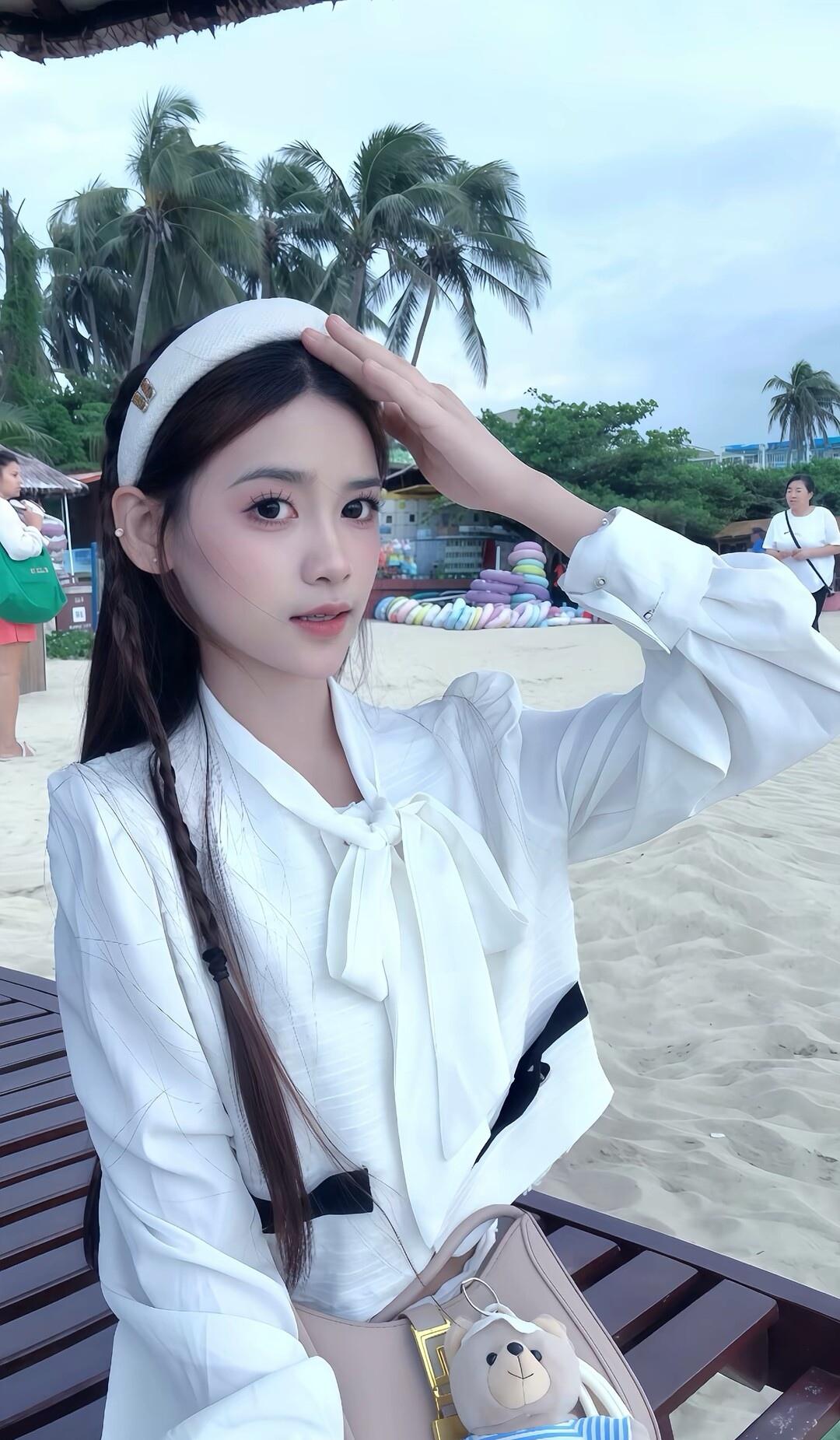 沙滩上的甜美少女,阳光下的温柔时光🌞💙