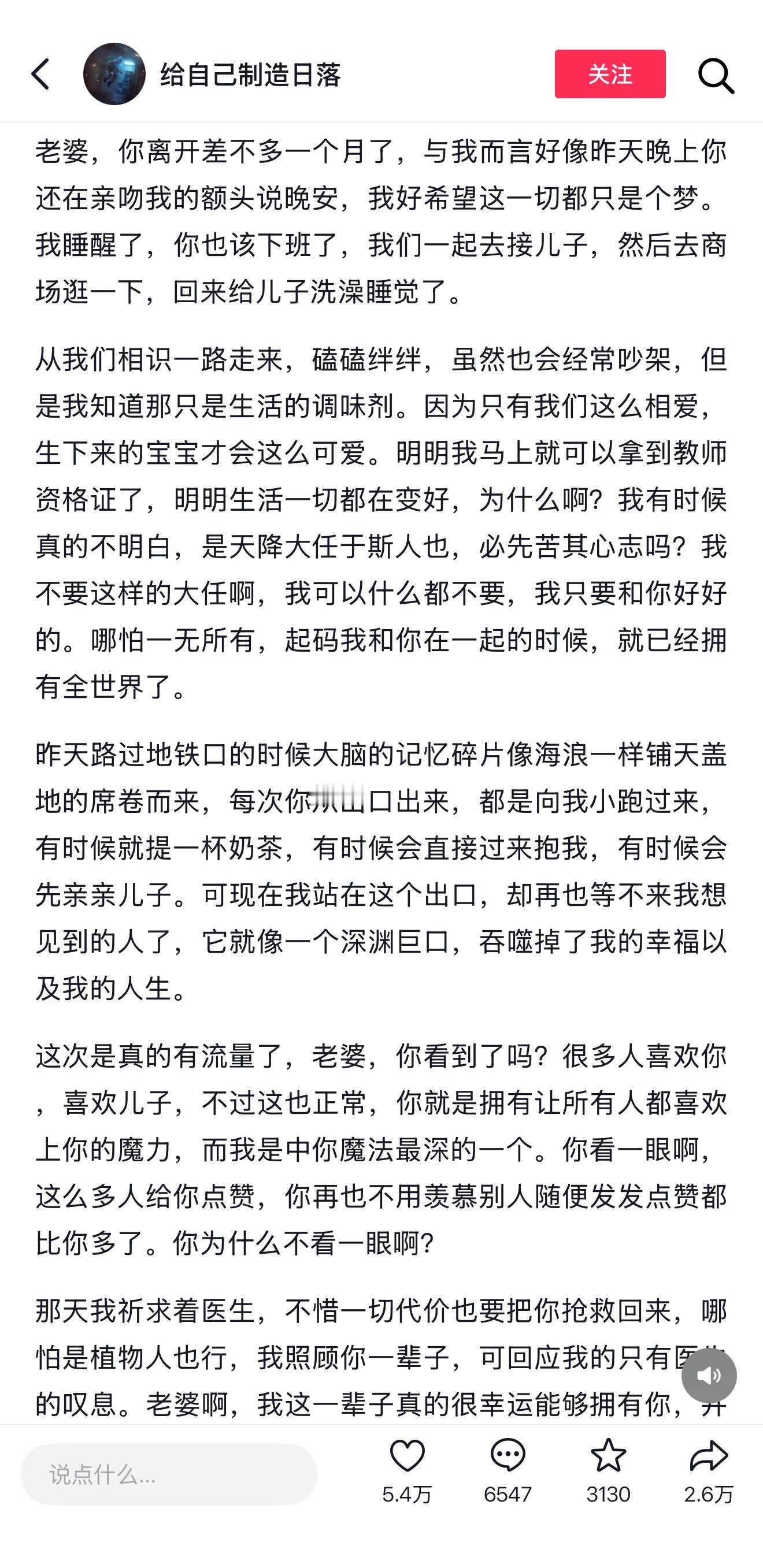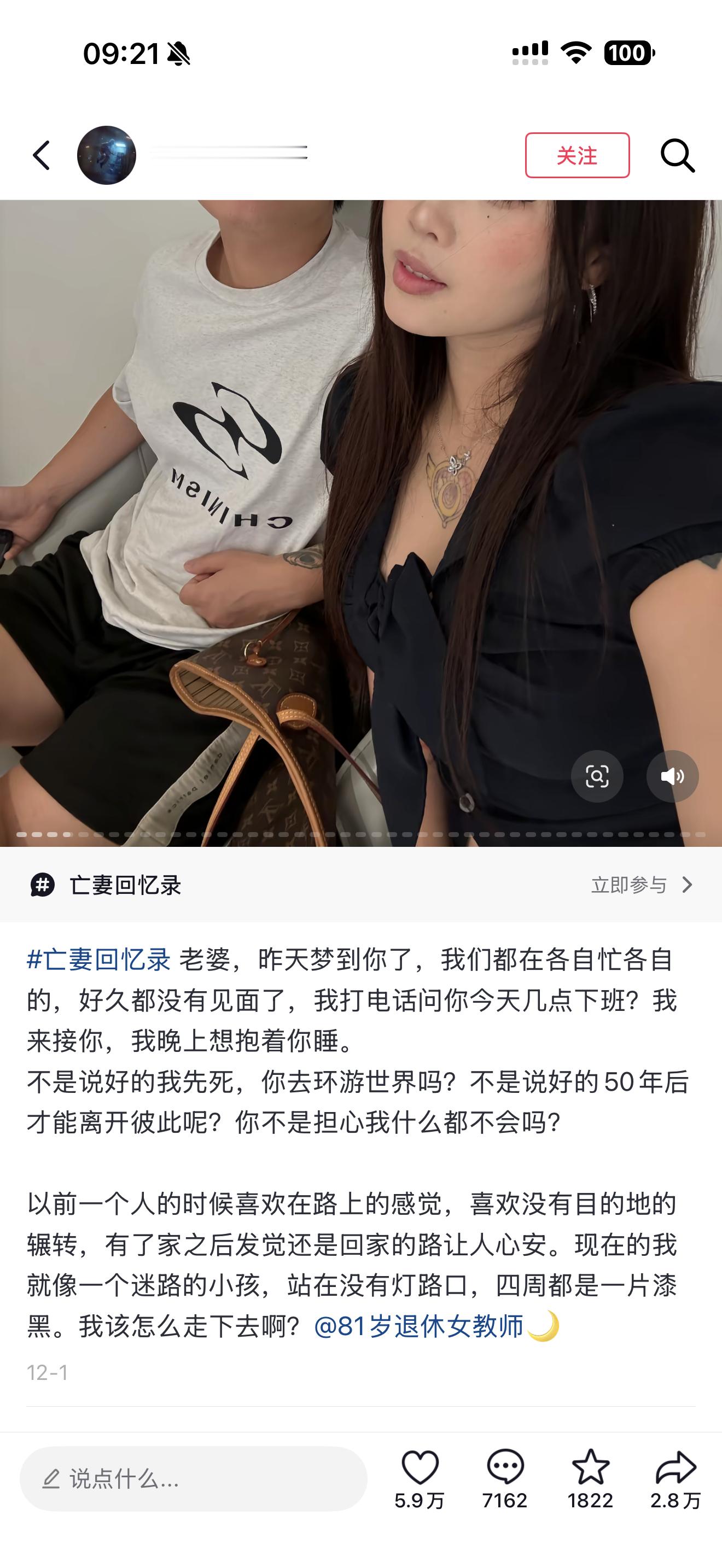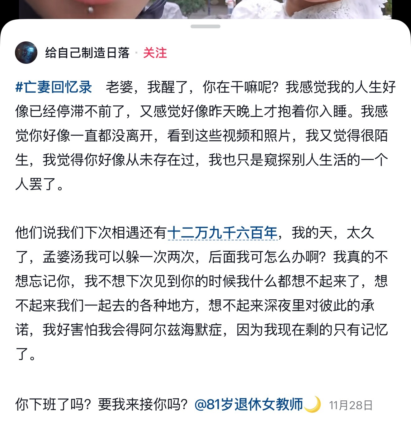 我想到我刷到这个男的表演还哭了就想给自己一巴掌(主要是女生车祸走得很突然又是武汉的,好多照片上的地方我也去过)……实际上女生刚生完娃两个月就发了微博图7最近很多营销号也在歌颂这个男的《亡妻回忆录》,别给他流量,他已经吃上🎶的共享了贱人啊啊啊啊啊
