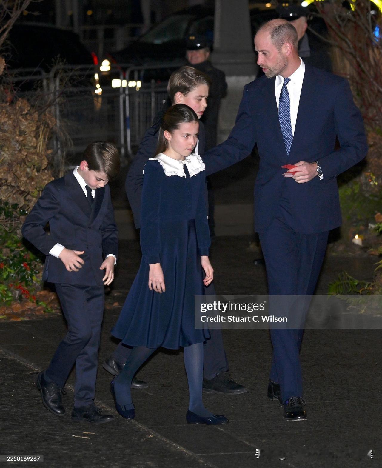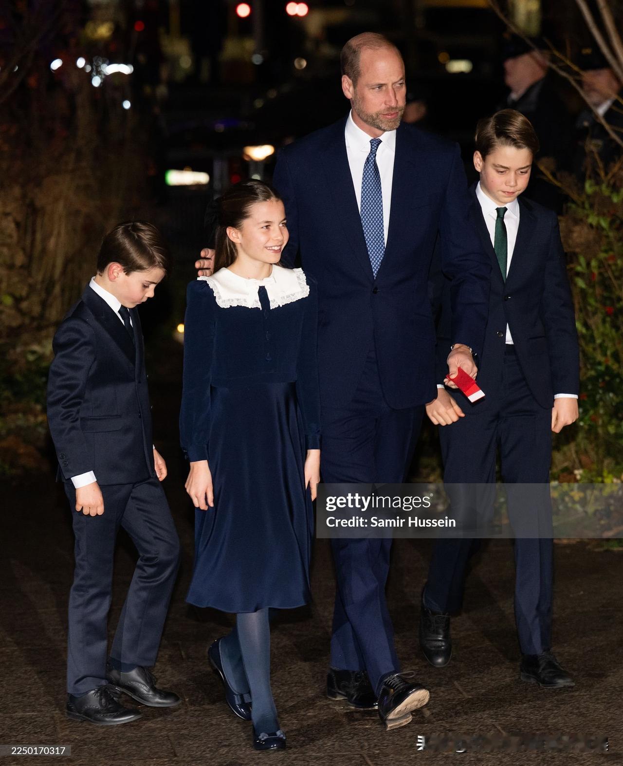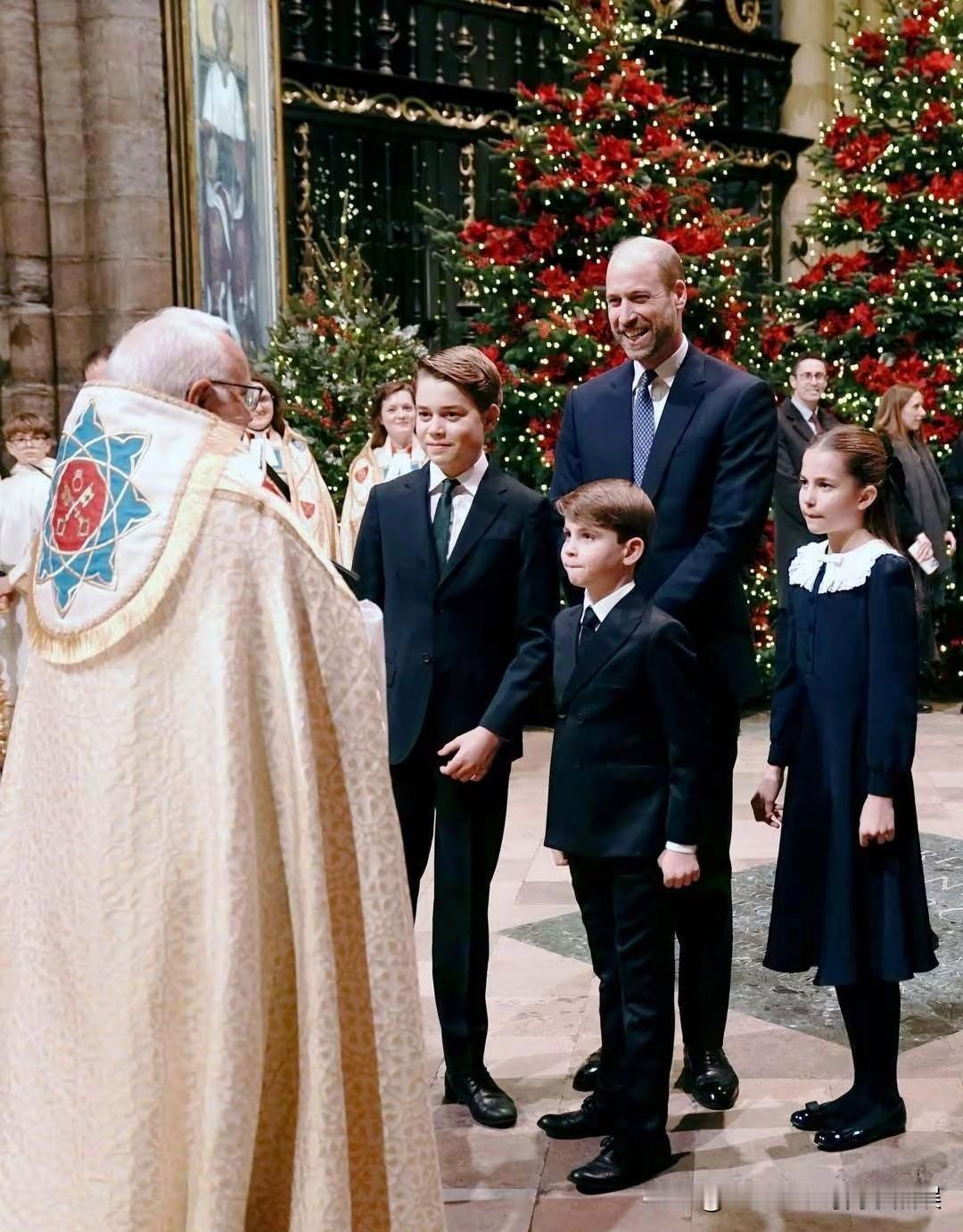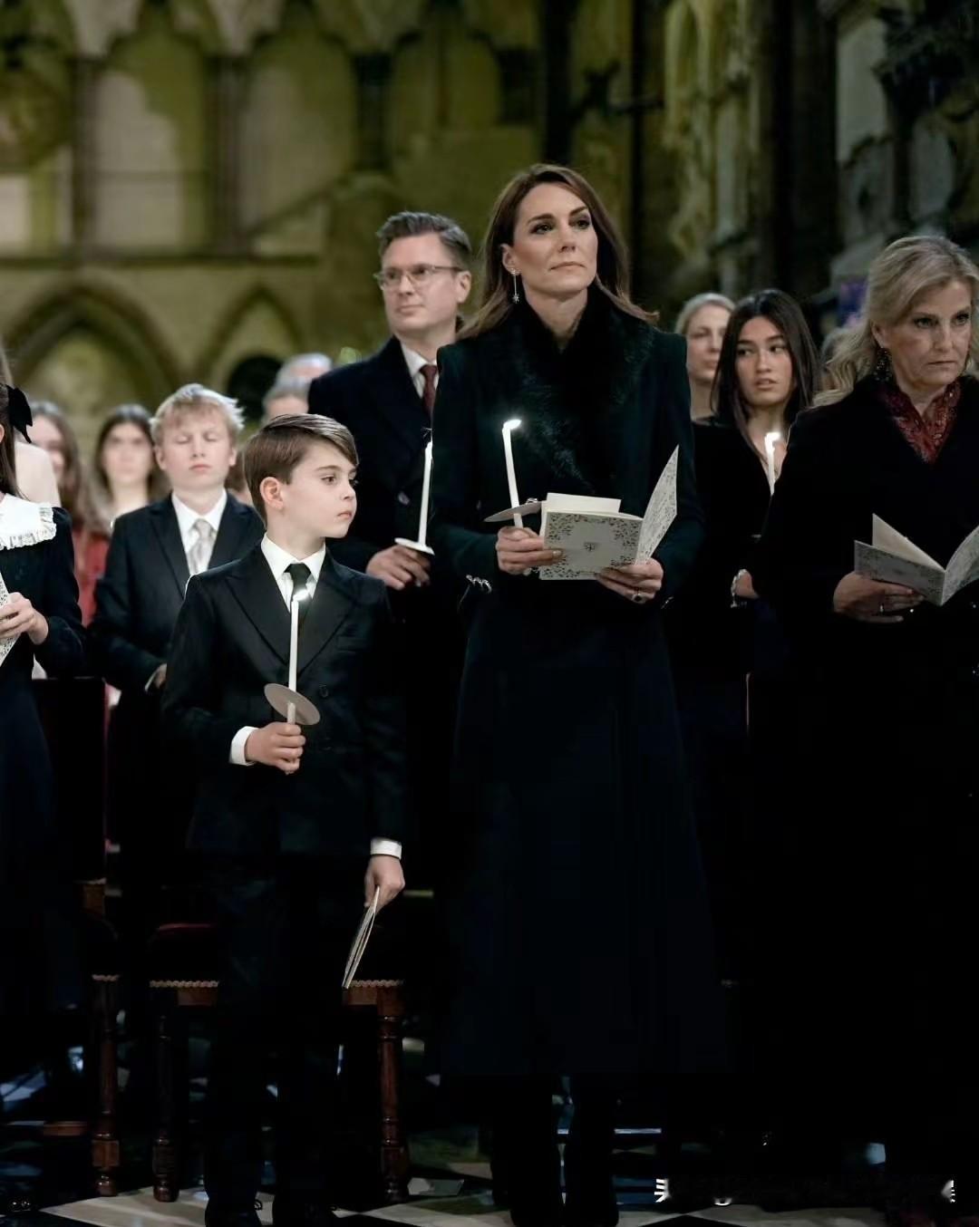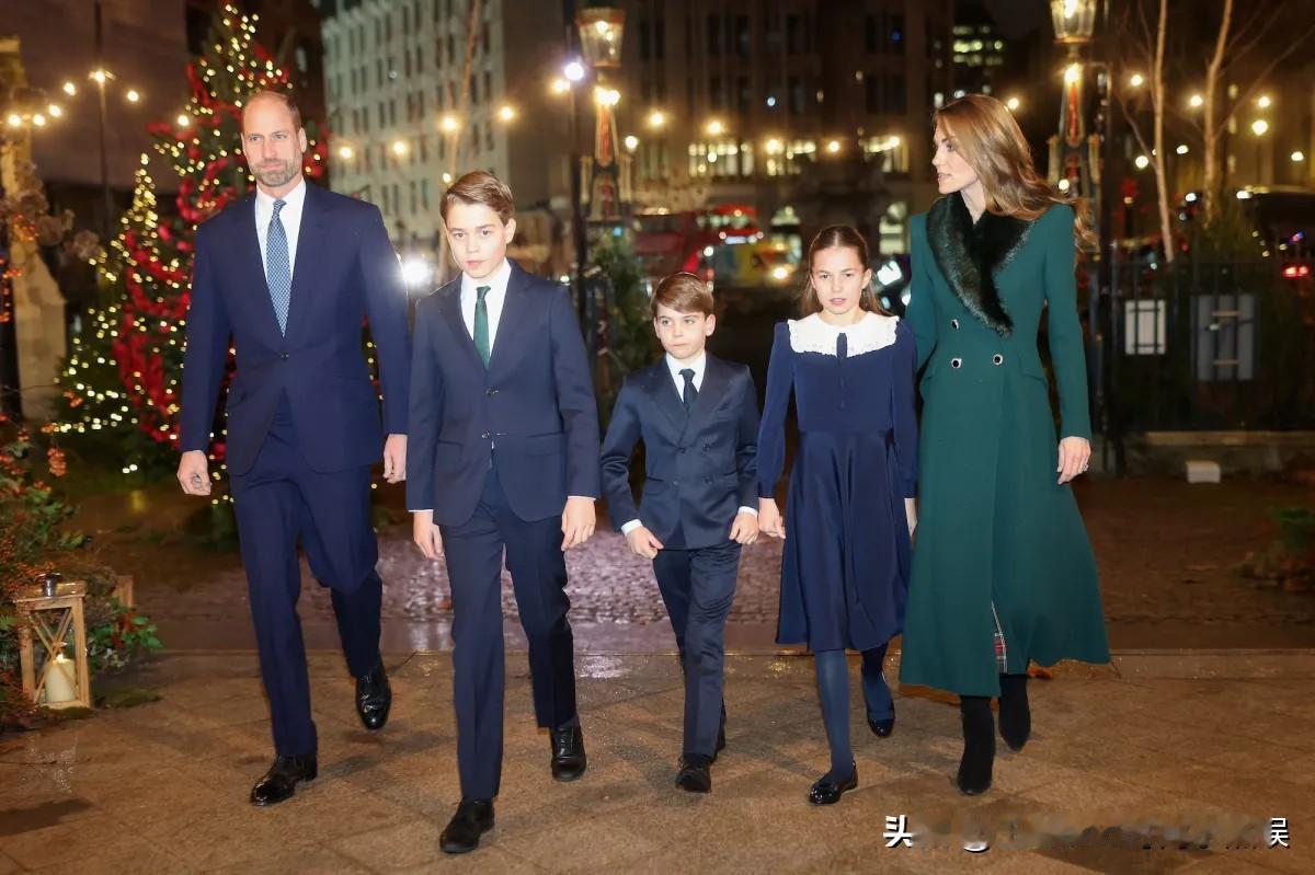 威尔士一家五口整整齐齐亮相,一同出席圣诞颂歌音乐会。 12月5日,凯特王妃第5次在威斯敏斯特大教堂主持圣诞颂歌音乐会。 凯特王妃作为主持人先行抵达教堂招待宾客们,她穿着一身森林绿皮草大衣,尽显雍容华贵。 威廉王储随后独自带着威尔士三宝乘车抵达教堂,凯特王妃也亲自来到门外和丈夫孩子们会合! 一家五口整整齐齐出现,一段时间不见,威尔士三宝变化真不小,三个孩子猛长个都长高了好多。 12岁的乔治王子身高直逼妈妈凯特王妃,成熟稳重,越来越有未来王储的气场。 10岁的夏洛特公主穿上新裙子,还和妈妈凯特王妃一样烫了波浪卷发,亭亭玉立,越来越有轻熟少女感。 7岁的路易小王子,穿着西装像个小绅士,不再调皮,也越来越乖巧了。 威廉王子和凯特