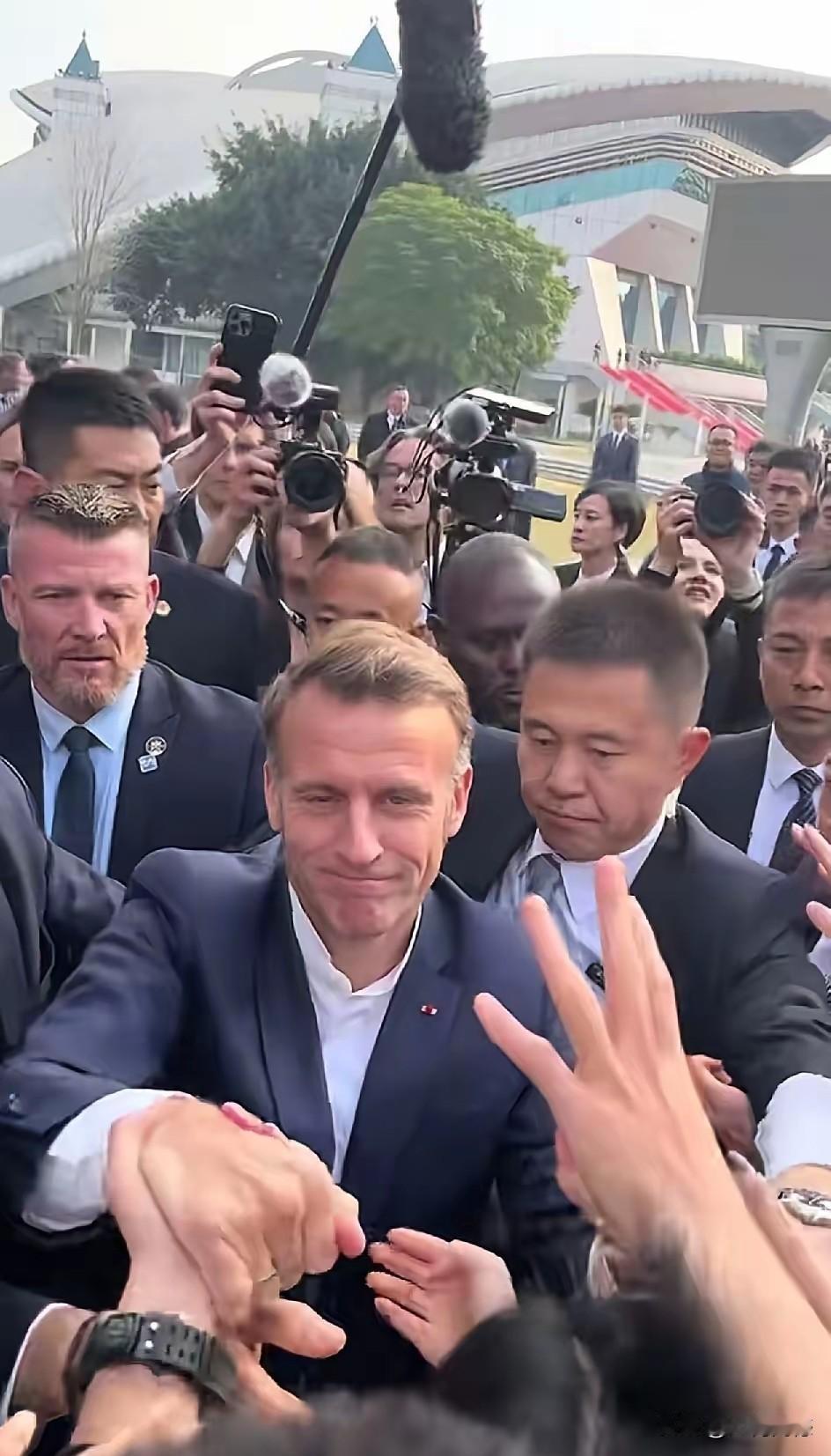 马克龙的魅力的确与众不同,这么多人和他热情交流,争相握手,足以看出对他的喜欢程度,由此也反映出一个深刻的问题,我们自古以来就是礼仪之邦,文化底蕴厚重,我们是非常善良的,是非常淳朴的,是非常友善的,这些优秀品质刻在我们的基因里,不知道马克龙能否感受到这一点!