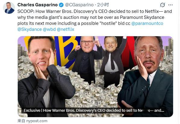 据报道,派拉蒙影业目前正寻求对华纳兄弟发起恶意收购。当然,现在只是考虑中,尚未实行。具体是因为派拉蒙指责华纳兄弟拍卖过程不公(偏向Netflix),所以才考虑直接向股东发起恶意收购,以绕过董事会。他们认为自己每股30美元的全现金报价高于Netflix提供的方案,而Netflix提交了约每股27-28美元(现金+股票混合),但仅针对工作室和流媒体资产(不包括有线网络)。派拉蒙的收购资金来自Ellison家族、私募以及一些来自中东的基金。netflix将收购华纳兄弟