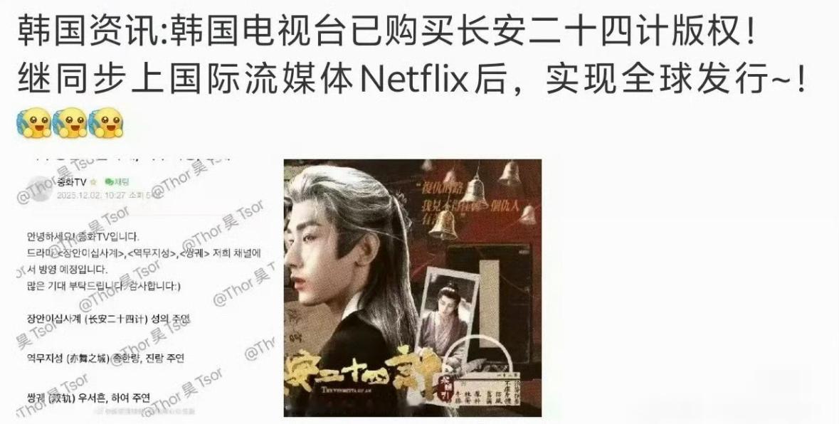 成毅长安二十四计上星央八、👖、网飞Netflix上线、韩国电视台已购入版权。全