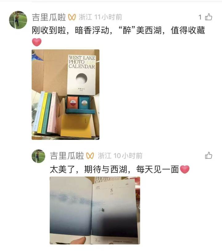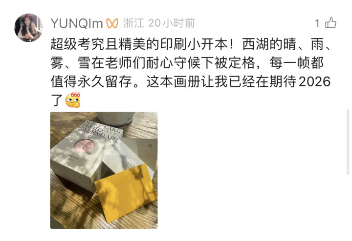 自10月31日推出预售开始,受到了许多人的欢迎,刷屏各个社交平台。上周开始我们按照下单顺序陆续发货,第一批收到《西湖日历》的小伙伴已经迫不及待发帖晒书了。