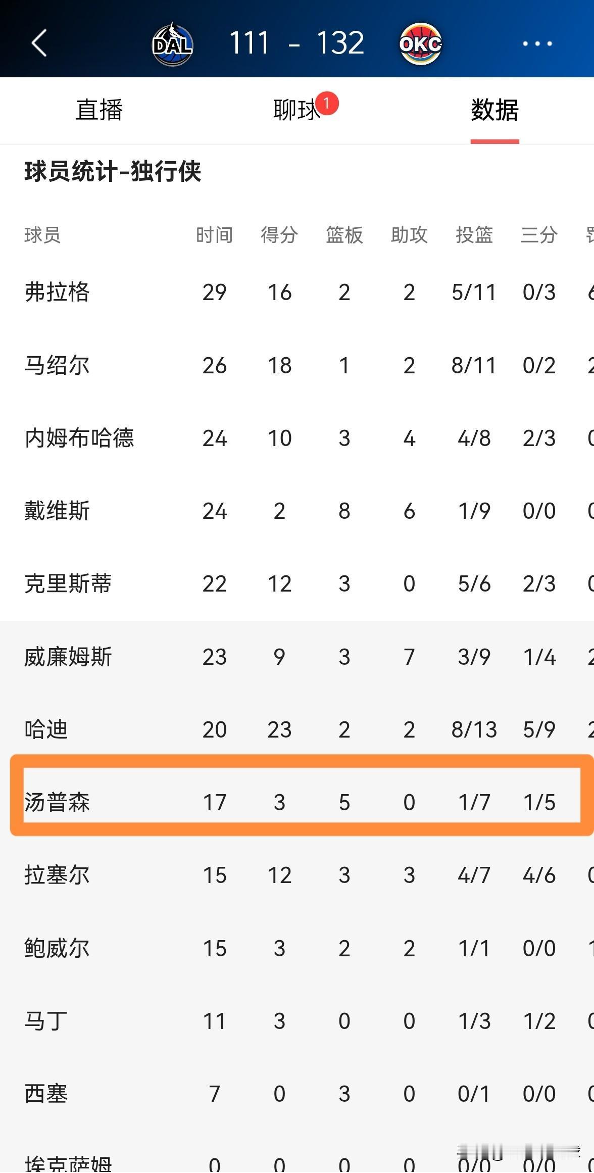 我强烈建议独行侠立刻裁掉克莱-汤普森!今天独行侠在客场以111:132惨败于雷霆,此役汤普森的表现真是糟糕透顶。 整场比赛下来,汤普森替补出战17分钟,投篮7中1,其中三分球5中1仅仅得到可怜的3分,他的场上正负值为-5。 毫不客气的说,目前的汤普森完全成为了球队的累赘,他攻不进防不住,简直就是占着茅坑不拉屎。
