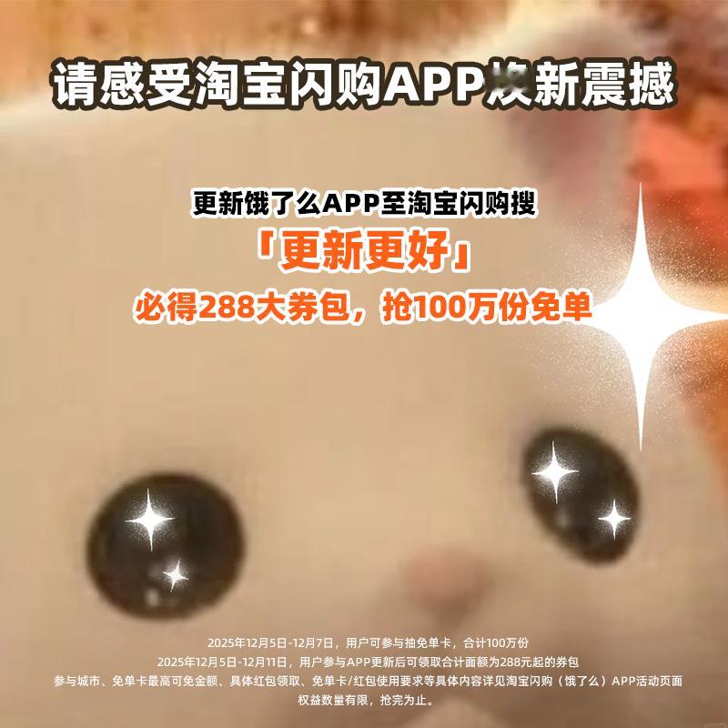 升级饿了么APP至淘宝闪购真的橙看到在几个城市品牌更新的线下活动,一下子对饿了么APP更新为淘宝闪购有了实感,墙上的一个个盲盒就像我们曾经点过点订单,都是和饿了么共同的美好回忆,亲手抽出盲盒,也是亲手翻开新篇章~希望更新之后我和淘宝闪购都能越变越好!更新饿了么APP至淘宝闪购,搜【更新更好】赢「100万份免单」,必得288元起大券包升级饿了么APP至淘宝闪购赢免单