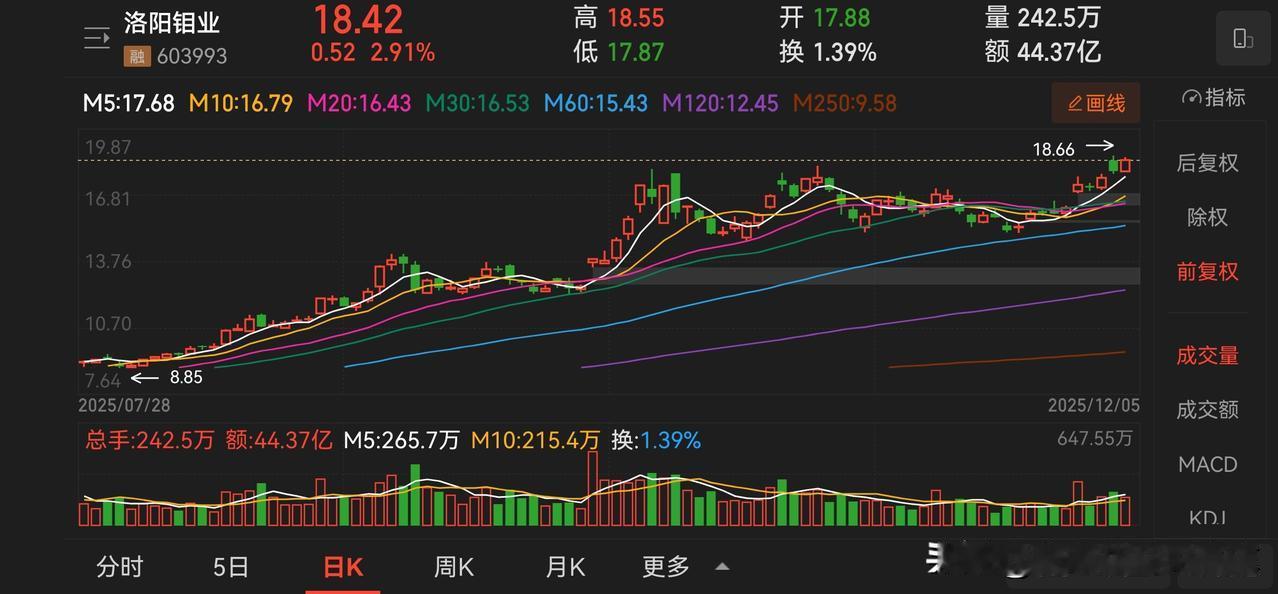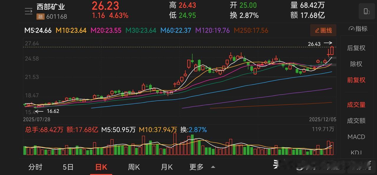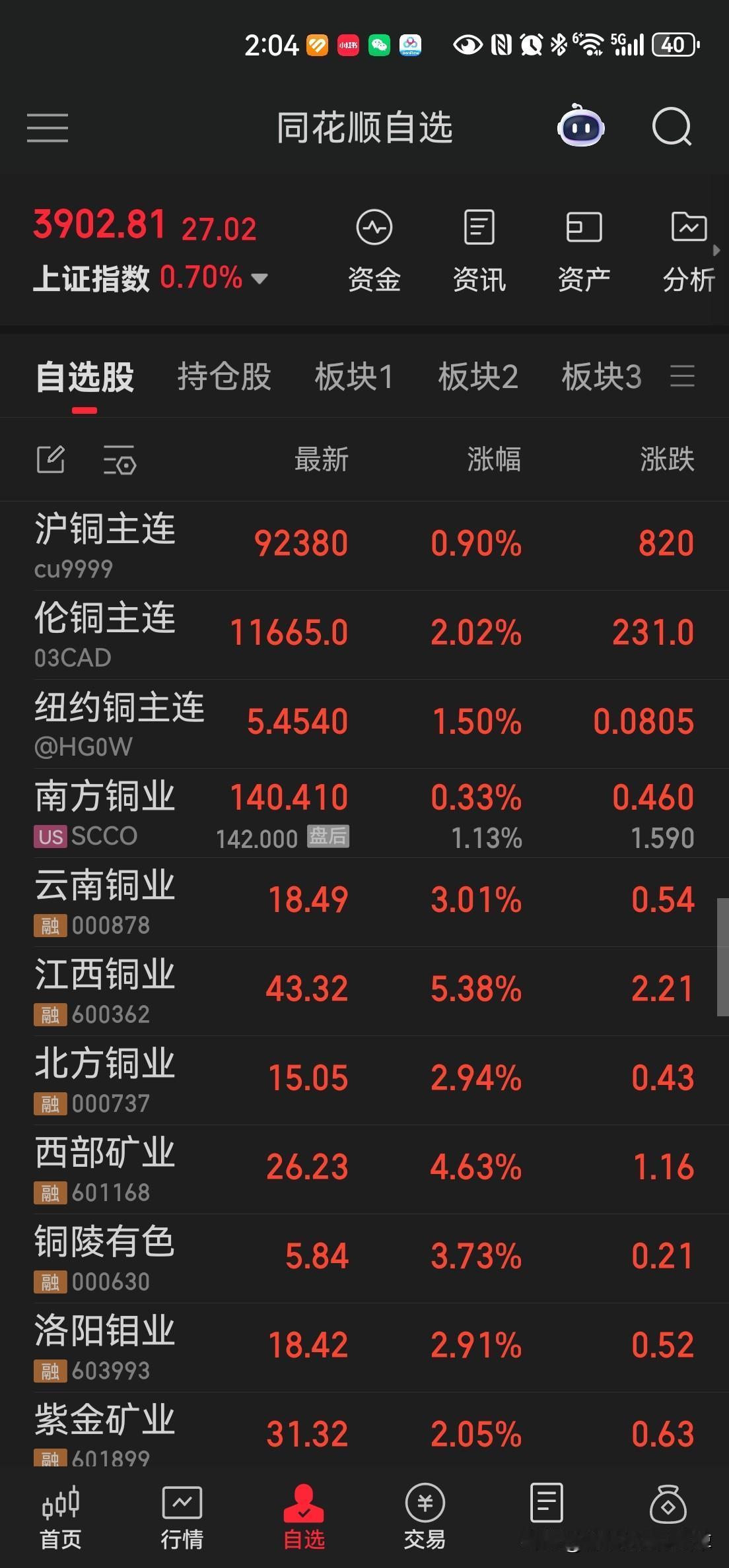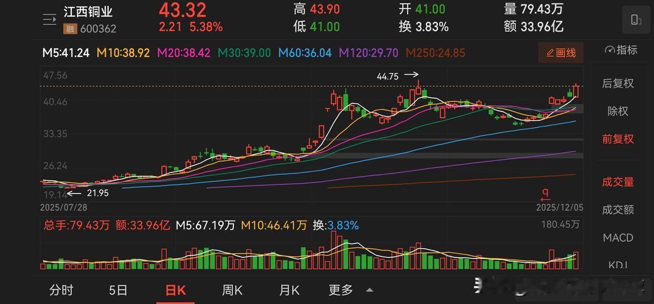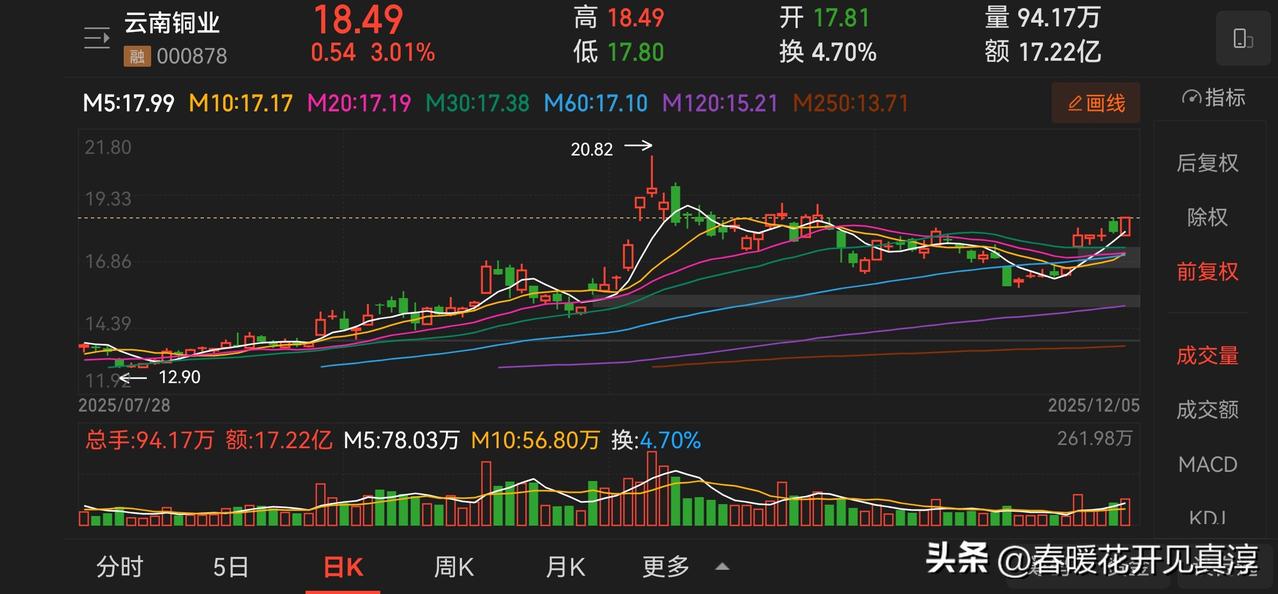 马后炮:铜期货的主升浪已经开始了!今天核心的分享其实就是这一句话,其他的都是闲聊,在伦铜突破11000美金之后,已经势不可当。 西部矿业、洛阳牧业已经拉出新高,江西铜业、铜陵有色、紫金矿业等等一众有色品种已经逐个来到前期的小高点附近,云南铜业和北方铜业跌的相对深一点,也快回来了。 今天用了两篇帖子来分别聊铜和券商,春节前的几个月,持股待涨吧。