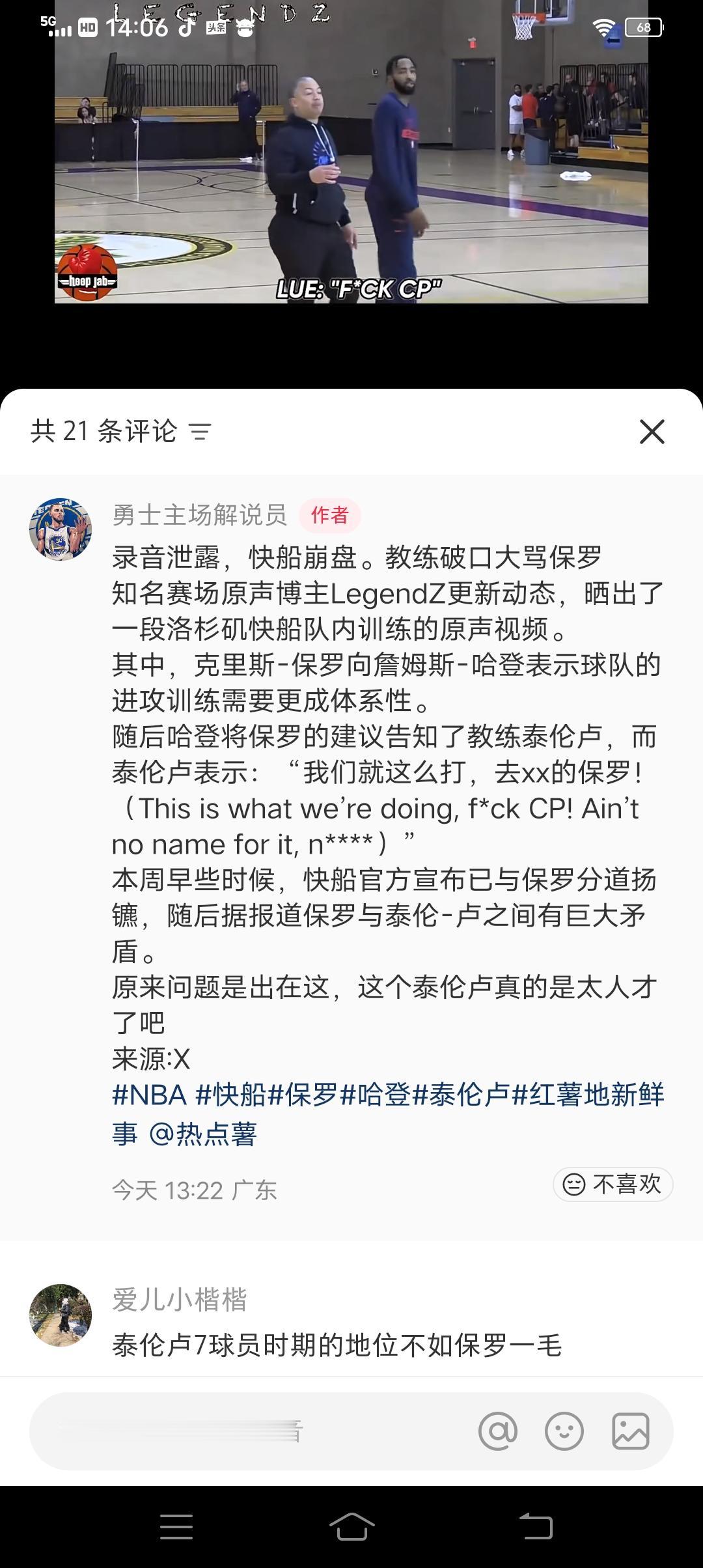 克里斯保罗被辞退的真相出来了,原来还真的是因为主教练泰伦卢! 稍早时候,美国知名赛场原声博主在社媒发出一段快船的训练视频,视频清清楚楚显示:保罗向哈登表示球队的进攻训练要更成体系性,哈登向泰伦卢做了转述,泰伦卢当场破口大骂:“我们就这么打,去xx的克里斯保罗”…… 前几天,当保罗被快船辞退的时候,大家都在猜测是因为什么原因,有网友猜测是因为泰伦卢,也有网友猜测是因为伦纳德,现在终于水落石出了,就是因为泰伦卢。 而对于快船队主教练和功勋球员之间的分歧,球迷也给出了不同的看法。有球迷认为保罗太自以为是了,没有摆正自己的位置。也有球迷认为泰伦卢执教能力不行,就是靠捧巨星的臭脚上位的。 大家怎么看呢?