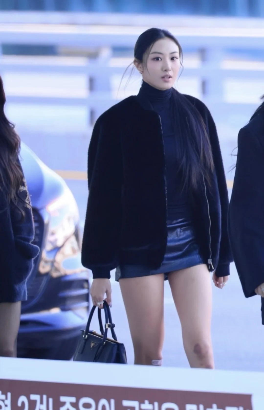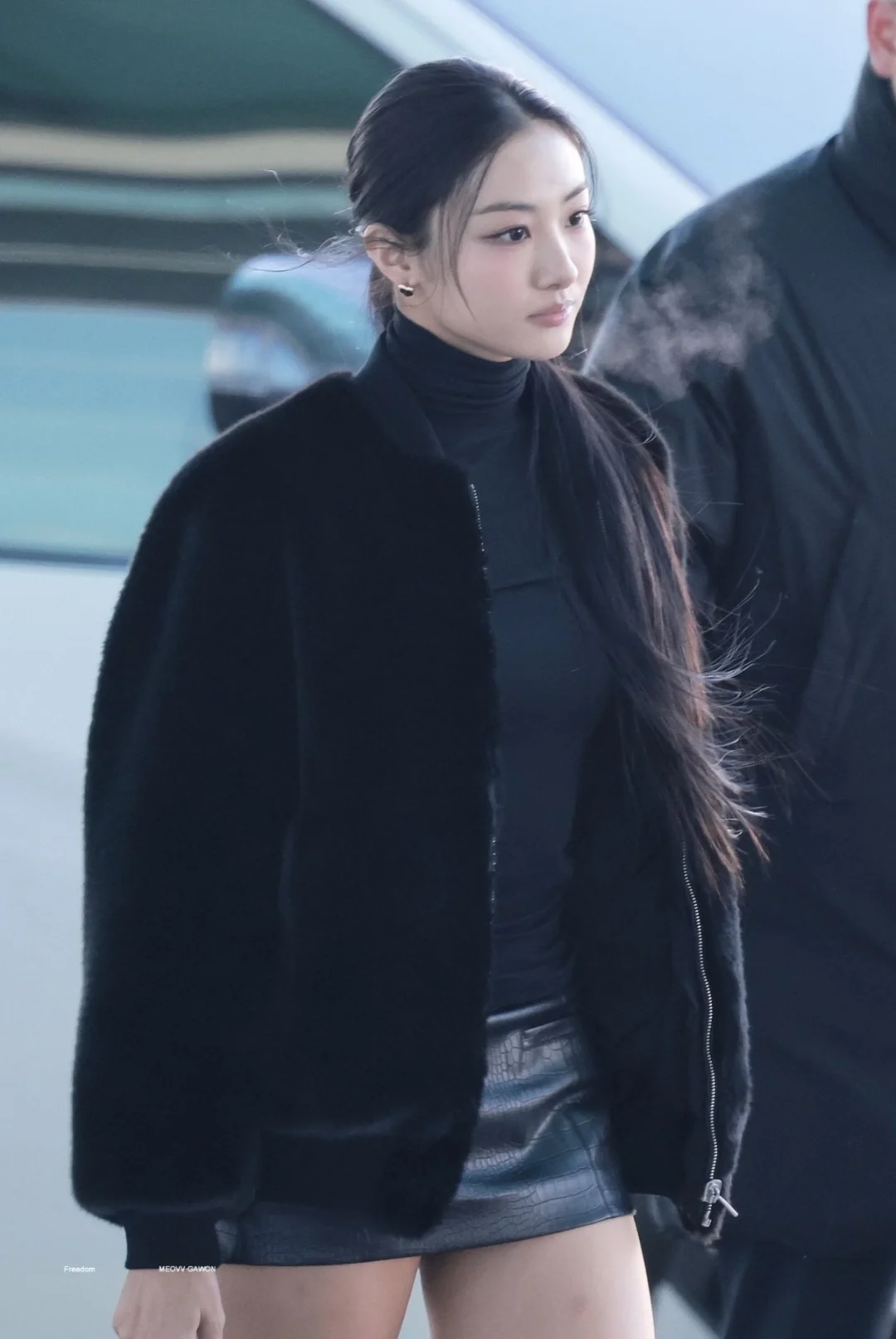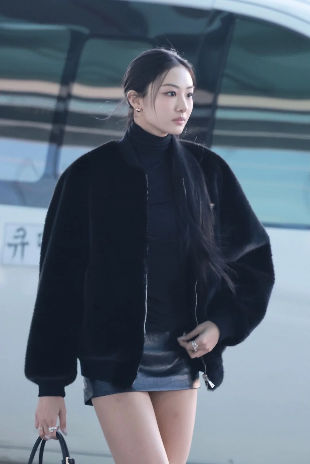 普通黑穿搭显老?看Gawon怎么把All Black玩出“甜酷双杀”👇 1️⃣ 材质对冲是关键:毛绒外套的软vs皮裙的硬,一柔一刚,视觉上直接跳出“沉闷黑” 2️⃣ 露肤度拿捏好:短款裙装露腿+高领内搭锁温,冬天穿既不冻人又能秀身材 3️⃣ 小配饰藏小心机:戒指叠戴+金属扣包包,黑色里的“亮细节”让整套不寡淡 跟着Gawon穿,All Black也能又甜又拽!