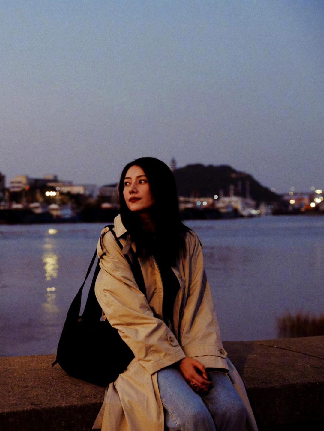 高圆圆这组“黄昏码头随拍”,是把温柔刻进晚风里了吧!】 卡其风衣配松弛感长发,往
