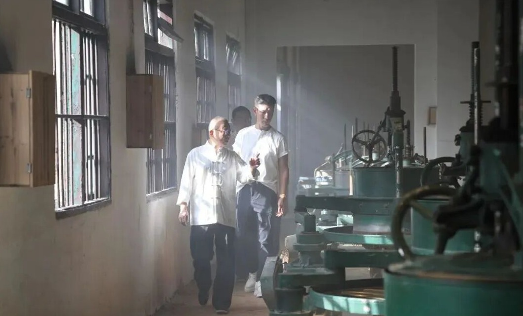 拍摄期间,蒲巴甲虔诚拜师,在匠人的悉心指导下亲手体验每一道制茶工序。镜头记录下了他在晨雾中登茶山采鲜叶的专注,在茶坊中反复练习揉捻技巧的执着,在发酵环节把握温度湿度的谨慎,以及在品鉴时细细体悟“祁门香”的感动。从白天到黑夜,转场多地多场景的密集拍摄,不仅是一次非遗技艺的虔诚之旅,更是一场与空间对话的文化修行。