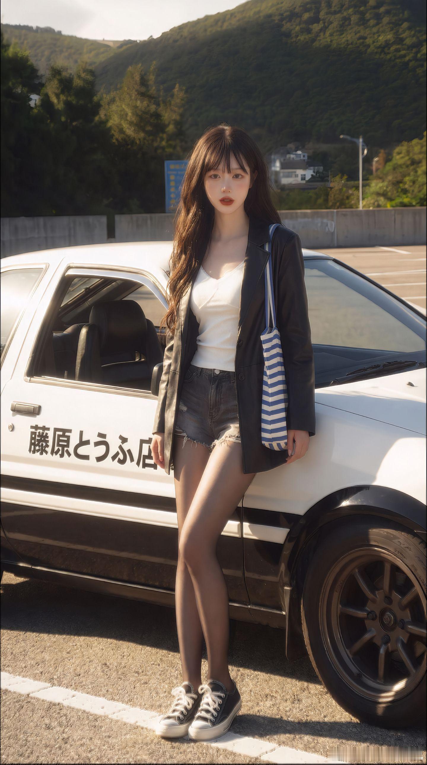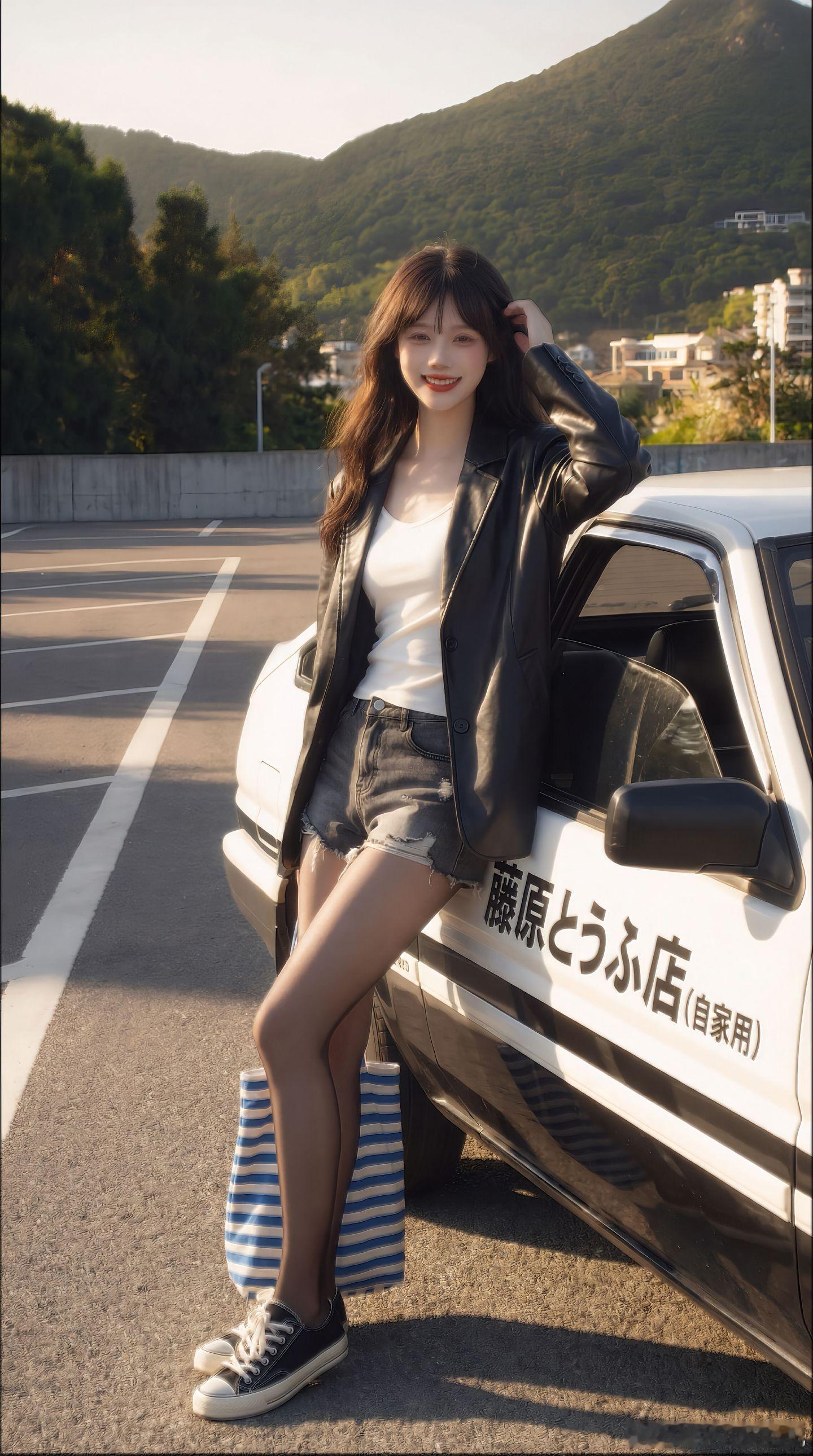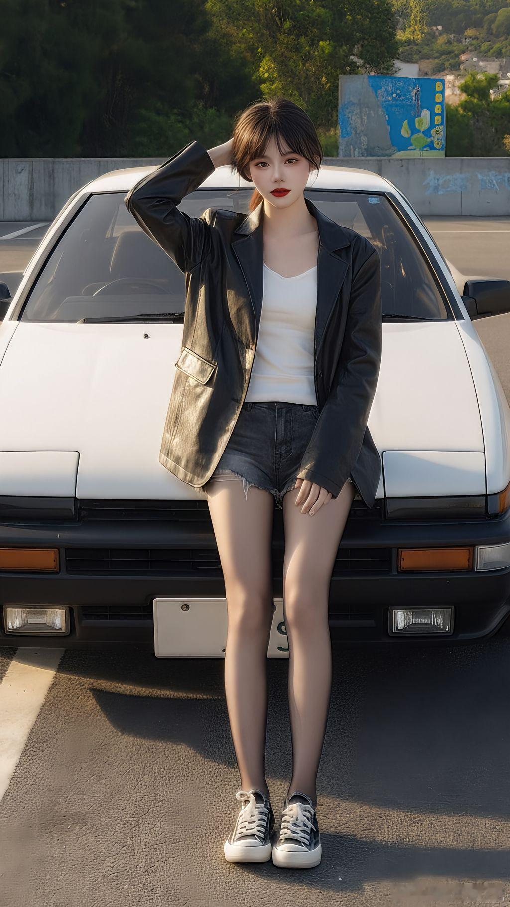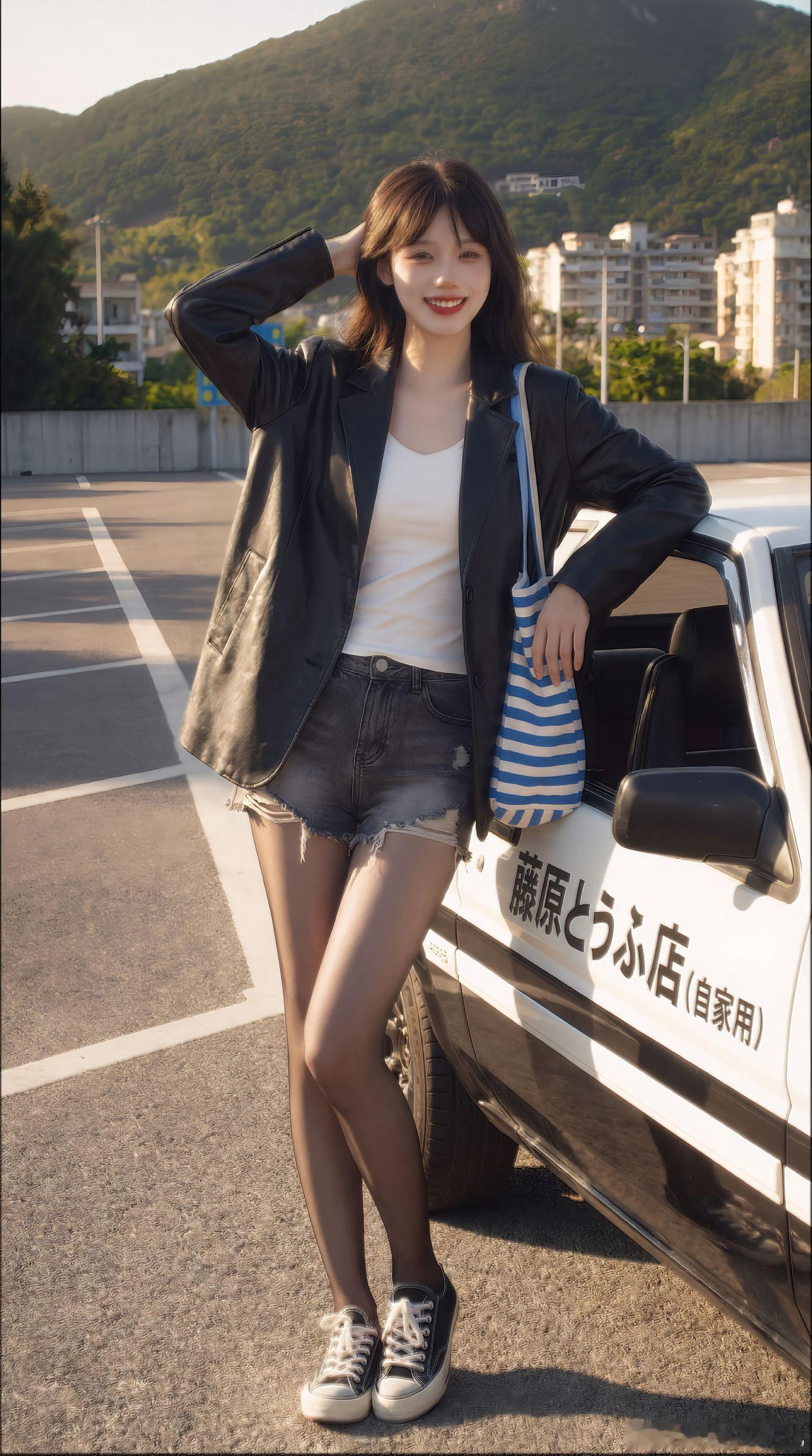 今天穿什么 皮衣,白背心打底,牛仔短裤,黑丝,出发美女绘梦长廊