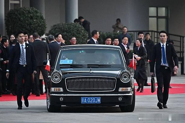 法新社镜头下马克龙挥手致意红旗车庄重霸气,来自东方的顶级豪华法新社镜头下的马克龙