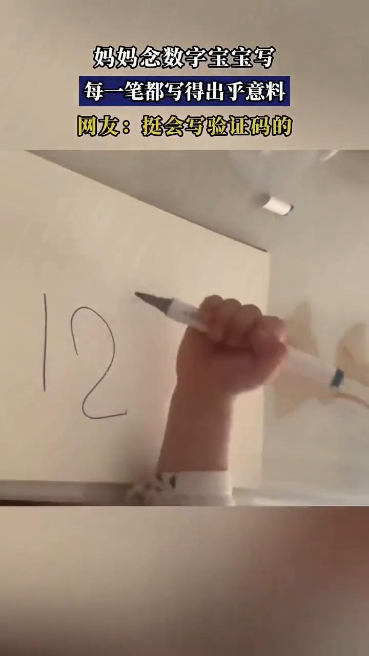 妈妈念数字宝宝写,每一笔都写得出乎意料。 网友:挺会写验证码的。
