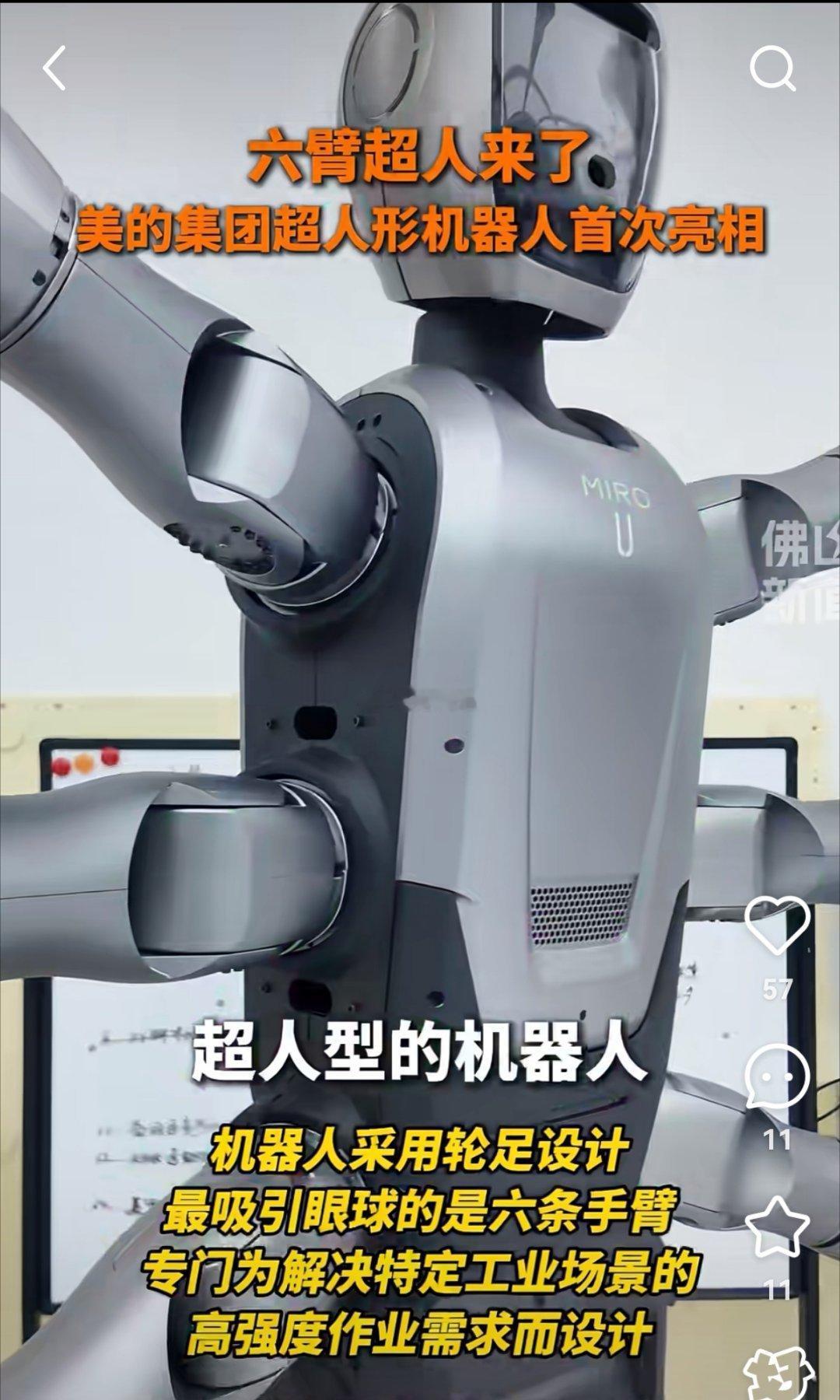 美的发布新一代工业场景机器人:6臂“机器超人”。
