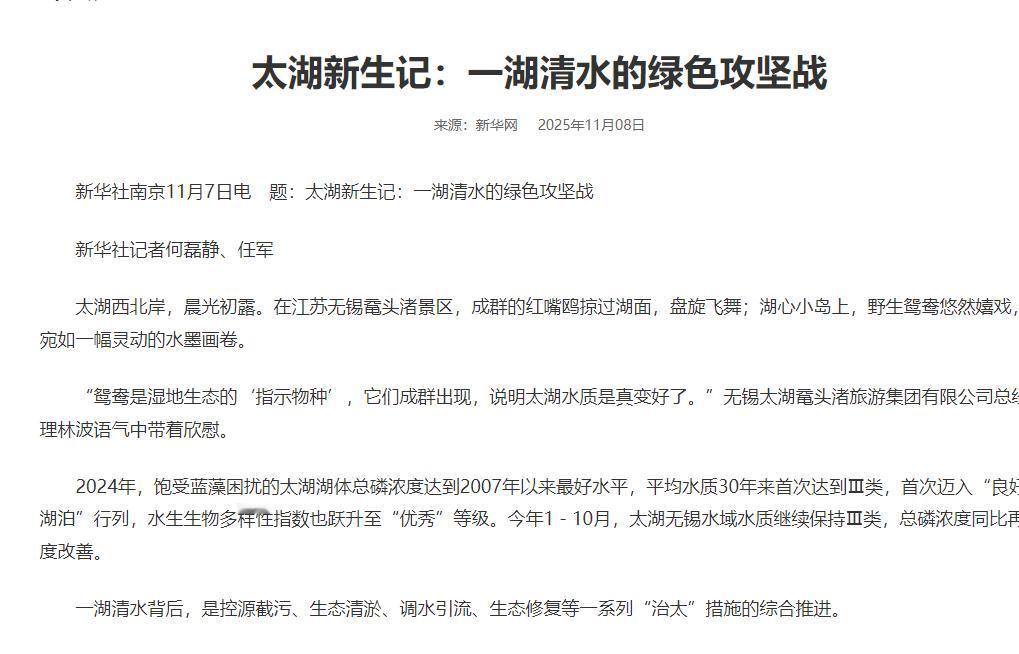你敢信吗?太湖底下,2.3米厚的淤泥,上面才趴着不到1.9米的水,说白了,以前的太湖就是个巨大的化粪池。 太湖这盆水,搁二十年前真没法看。平均水深不到两米,湖底淤着两三米厚的烂泥,一脚踩下去能陷到大腿根,捞上来的泥都是黑褐色的,腥臭扑鼻,裹着腐烂的水草和蓝藻尸体。 尤其是北边的梅梁湾、竺山湖,河网密得像筛子,沿岸工厂的管子直接往河里排带颜色的水,红的是印染厂的染料,黄的是化工厂的废料,村镇的生活污水直接泼进河道,猪圈的粪水顺着田埂往湖里流。 那时候湖边的老百姓开玩笑说,洗衣服不用肥皂,捧把湖水就能搓出泡,全是化肥农药和洗涤剂攒出来的。 问题出在“浅”和“挤”上。太湖平均水深1.9米,最深处不到4米,像个大平盆。稍微刮点风,湖底的淤泥就翻上来,把沉了几十年的污染物重新搅和到水里。周边又是中国最挤的工业区,苏州无锡常州的厂子挨着建,纺织厂、印染厂、化工厂围着湖排了一圈。 上世纪八九十年代,乡镇企业野蛮生长,没人管排污口,武进一个镇就有三百多家小化工,废水直接进河。河里的水常年泛着白沫,夏天太阳一晒,河面能飘起半尺厚的蓝藻,腥臭味隔着一里地都能熏晕人。 农村的面源污染更是雪上加霜。苏南的稻田像补丁一样挨着湖,农民为了高产,化肥农药可劲撒,尿素袋子堆得比人高。雨水一浇,氮磷钾顺着田埂往河里跑,河道成了流动的化肥汤。 湖边的围网养殖更夸张,梅梁湾曾经密密麻麻全是螃蟹网箱,每天往湖里倒几千斤饵料,残饵烂在水底,加上鱼蟹的排泄物,湖底的淤泥越堆越厚。中科院的专家测算过,那时候太湖每年收到的总氮总磷,超过环境容量三倍多,相当于每天往湖里倒几十车化肥。 生活污水的处理更是粗放。村镇没有下水道,老百姓淘米洗菜的水直接泼路边,厕所粪水渗进土坑,下雨就溢流到河里。苏州的老镇子里,临河的房子都有个“水桥”,洗衣服涮马桶全在河里,夏天蚊蝇乱飞。 2000年前后的调查显示,苏南农村80%的生活污水直接入河,河道成了天然的排污沟。湖边的垃圾也没处倒,塑料袋、烂菜叶堆在堤岸上,下雨就被冲进湖,跟着蓝藻一起漂,远远看过去像条花花绿绿的“垃圾带”。 最致命的是蓝藻的恶性循环,水浅阳光足,蓝藻长得飞快,夏天暴发时能把湖面盖得严严实实。蓝藻死了沉到湖底,腐烂分解消耗氧气,导致底层水发黑发臭,形成“湖泛”。2007年无锡的水危机,就是湖泛导致自来水厂没法取水,全城抢购矿泉水。中科院的老专家回忆,那时候在湖边走,鞋底能粘一层蓝藻尸体,像踩在烂抹布上。 这种“化粪池”状态不是一天形成的,从改革开放到2007年,太湖周边GDP涨了几十倍,人口增加了七百万,所有人都盯着“聚宝盆”,没人管“排污盆”。 直到蓝藻暴发倒逼治理,才发现问题像滚雪球,底泥里的磷存了几十年,每年释放的量比新排的还多;河道里的管网漏得像筛子,污水处理厂建了却收不到污水;甚至风向变了都能影响蓝藻聚集,风速减小让蓝藻更容易扎堆,暖冬让蓝藻越冬存活率提高。 现在回头看,太湖的“化粪池”阶段,本质是高速发展期生态账的集中暴露。当沿岸的化工厂、养殖场、村庄都把湖当天然垃圾桶,当“先污染后治理”的老路走到头,2.3米的淤泥里,埋着的何止是污染物,更是一代人对生态代价的懵懂。 好在后来痛定思痛,拆围网、清底泥、控磷排放,用十几年时间把水质从劣Ⅴ类拉回Ⅲ类,但那些黑臭的记忆,依然提醒着每个住在湖边的人:太湖的水,从来不是取之不尽的聚宝盆。