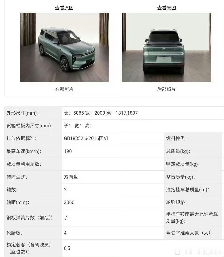 智己汽车申报了LS8的公告尺寸:5085x2000x1807mm轴距:3060m