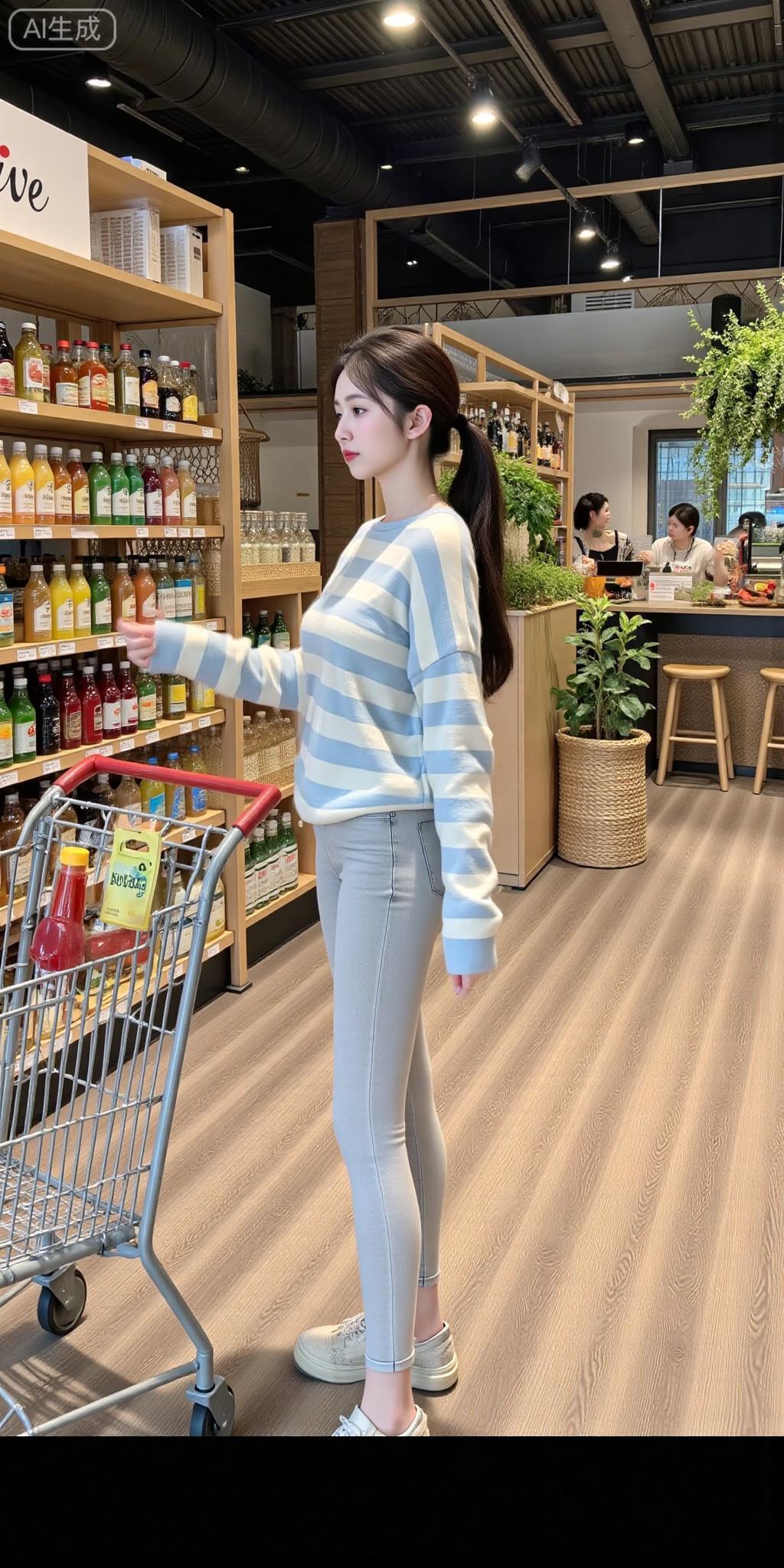 蓝白条纹毛衣+浅灰牛仔=超市里的氧气甜妹🌿浅蓝牛仔套装 牛仔毛衣穿搭 蓝格子裤穿搭 蓝条纹穿搭