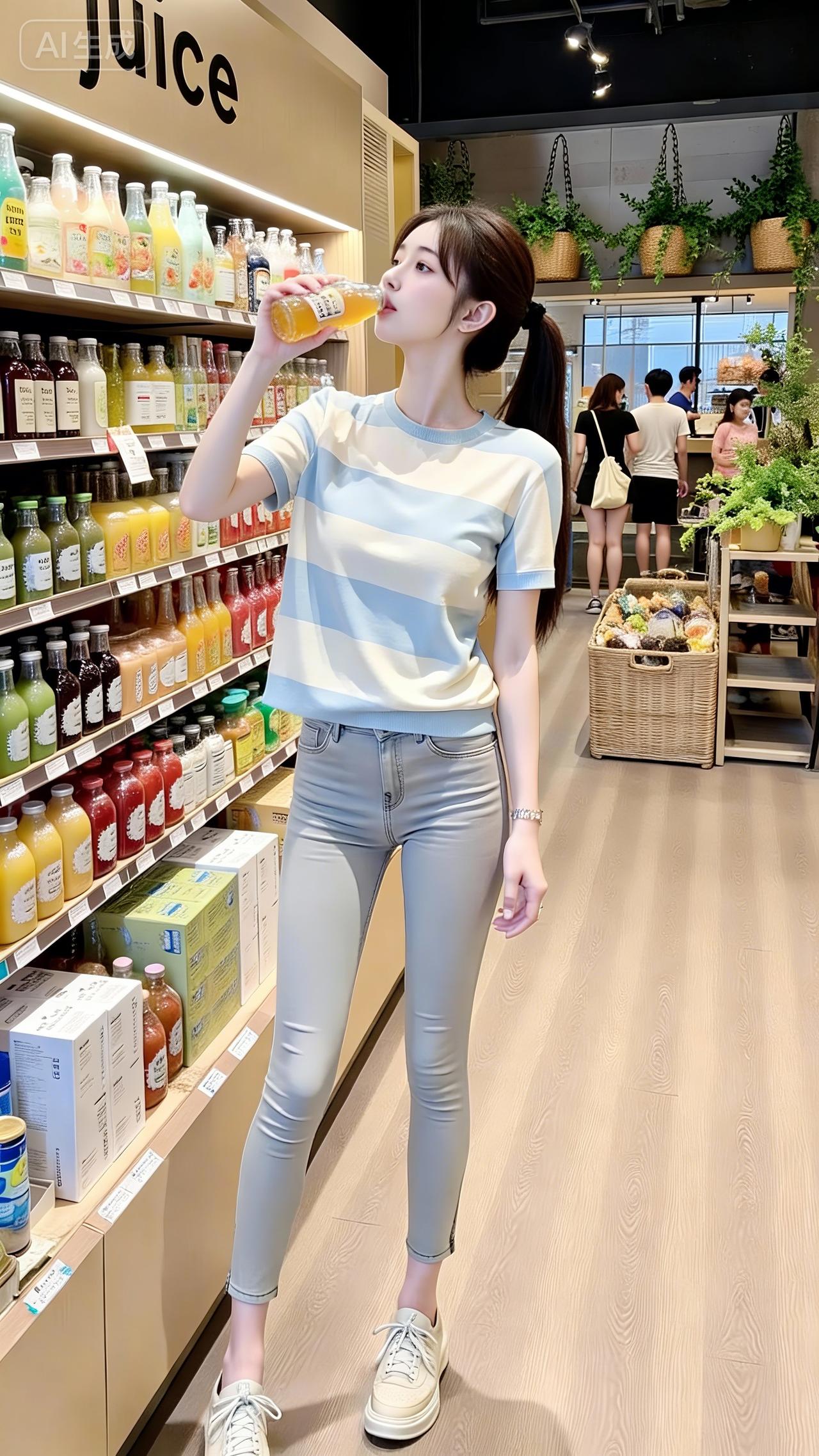蓝白条纹毛衣+浅灰牛仔=超市里的氧气甜妹🌿浅蓝牛仔套装 牛仔毛衣穿搭 蓝格子裤