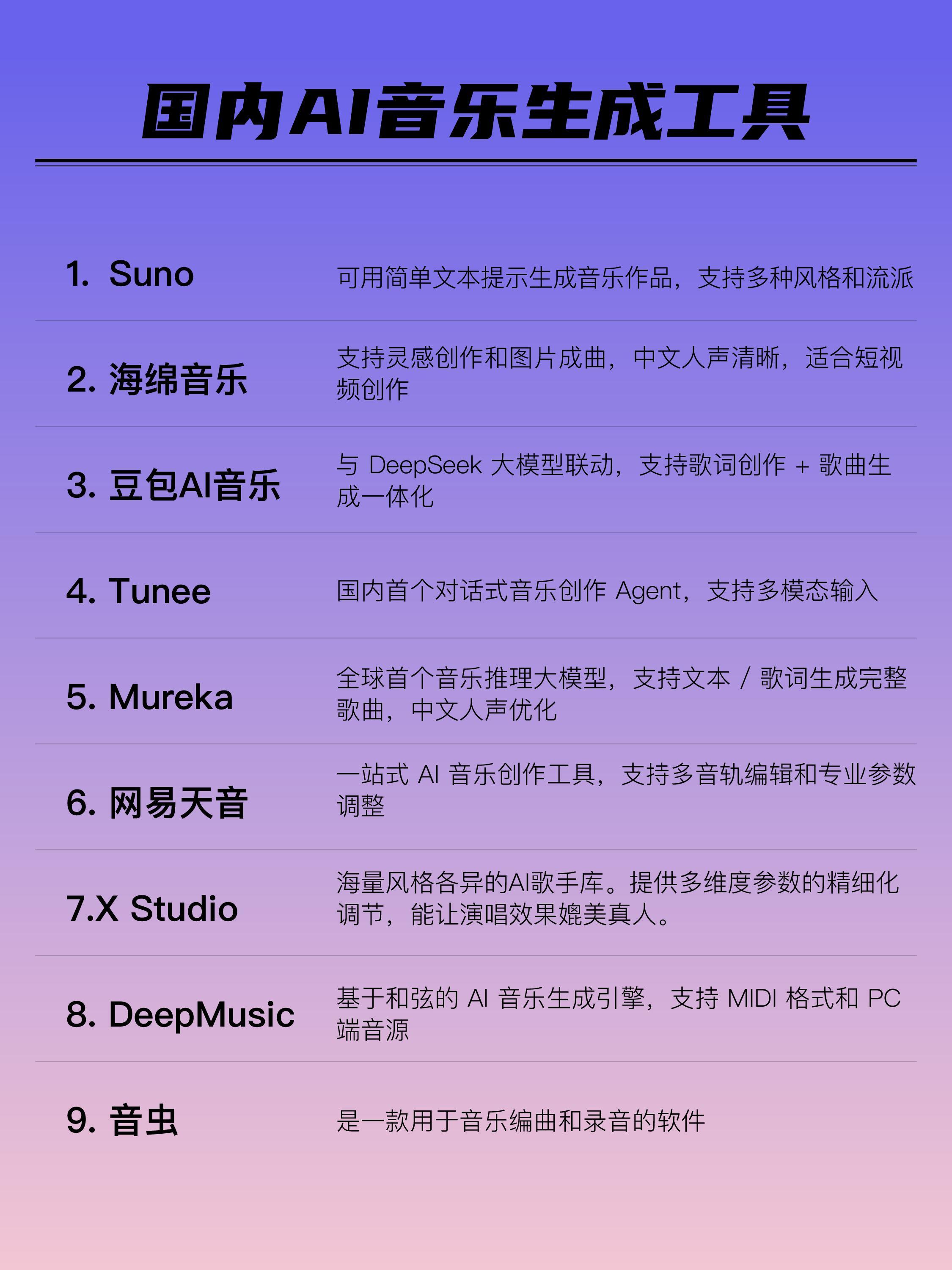 发现几个不错的AI音乐工具不懂乐理也能玩,流行、摇滚、古典各种风格随便挑,输入想
