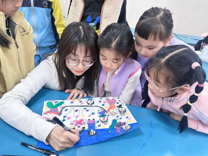 “刚开始,女儿画什么都是随性的。陈老师没有急着教技巧,而是蹲下来和她聊这节课的物品形象,用孩子气的语言引导她观察。等到每节课完成的作品提交后,陈老师会进行非常细致的点评。”王女士说,这点评堪称一篇“小作文”,找各种角度鼓励孩子,也会温和地提出可以改进的地方。
