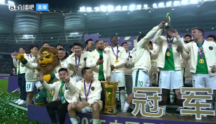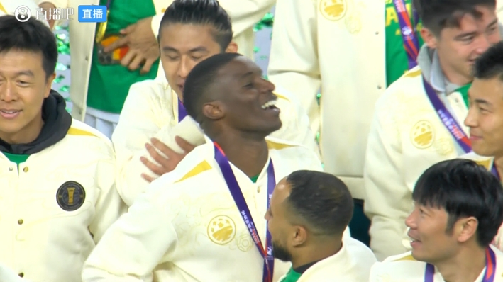 恩加德乌赛后捧杯后喷香槟+痛饮,喷了身后的张玉宁一脸
