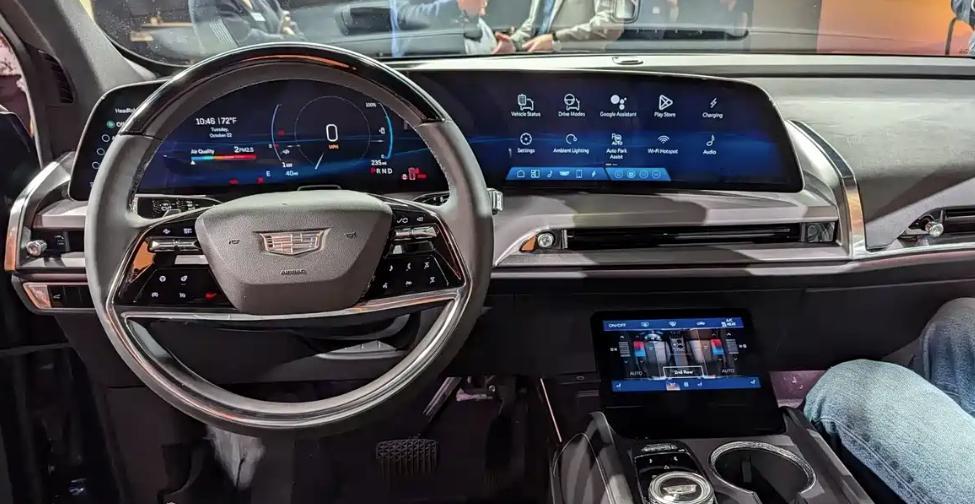 凯迪拉克VISTIQ申报图发布 新车定位大型SUV,介于IQ锐歌和凯雷德ESCALADE IQ之间,采用2+2+2的三排6座空间布局。参考海外版官图,中控通道区域配备了一个8英寸的悬浮式触控面板,是一个较大亮点。