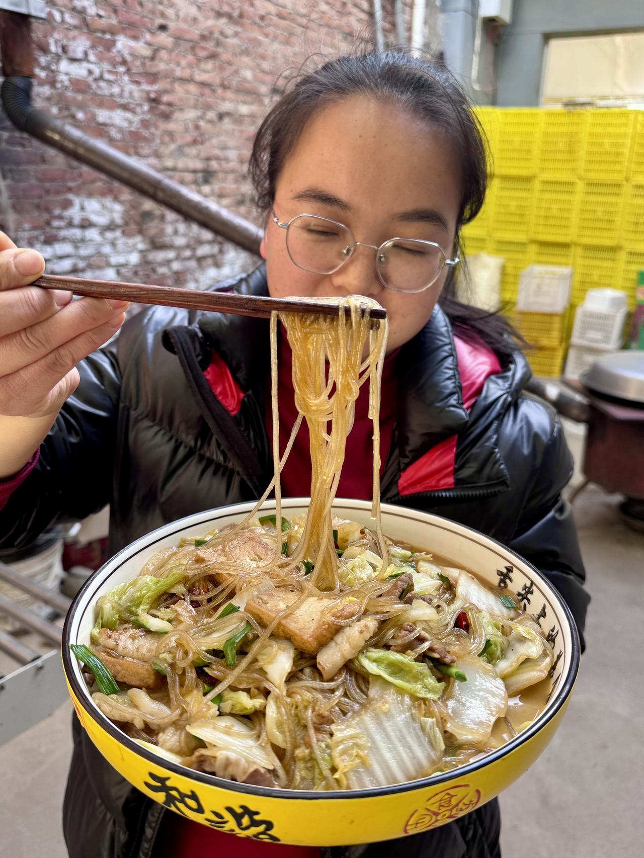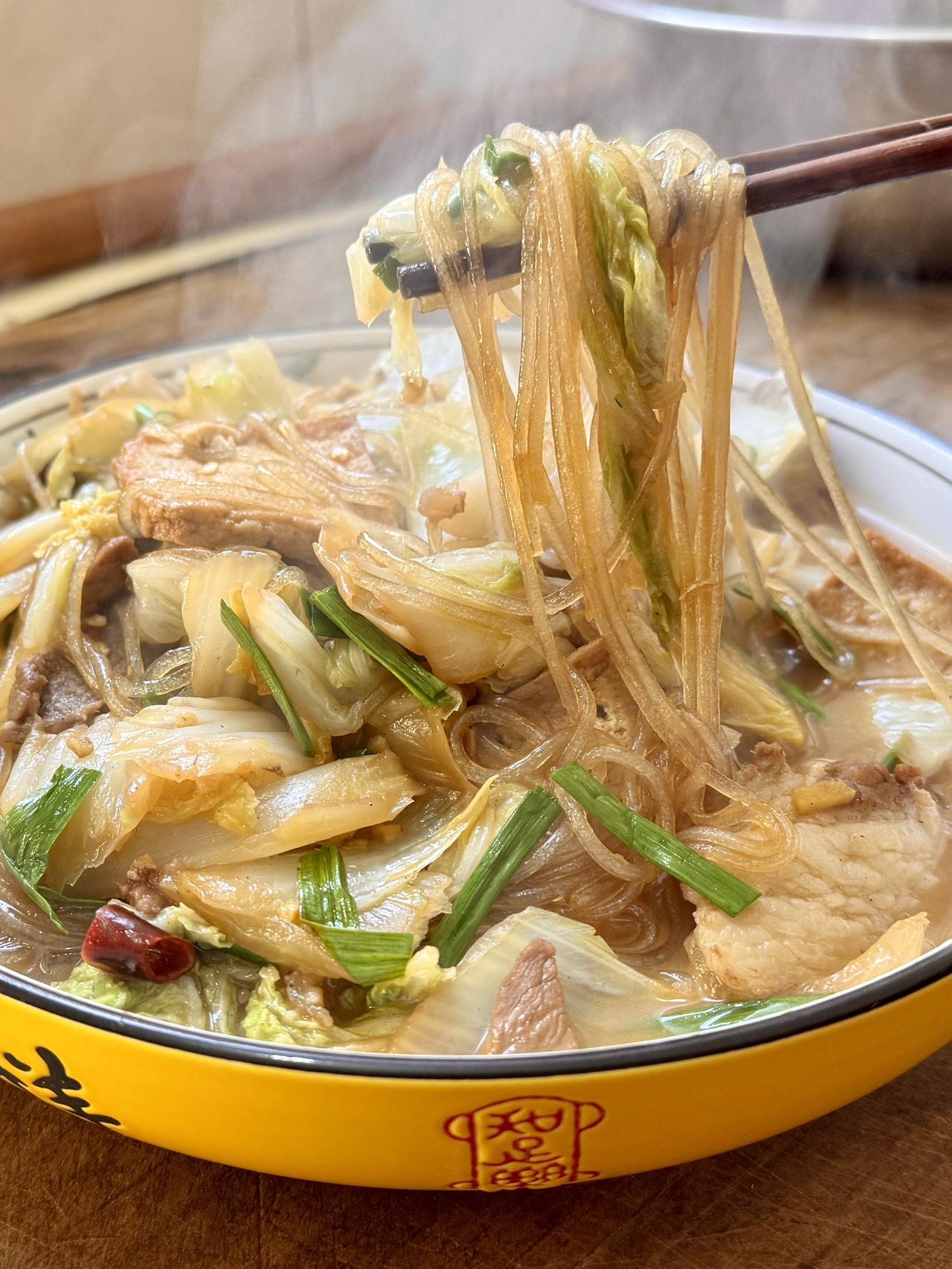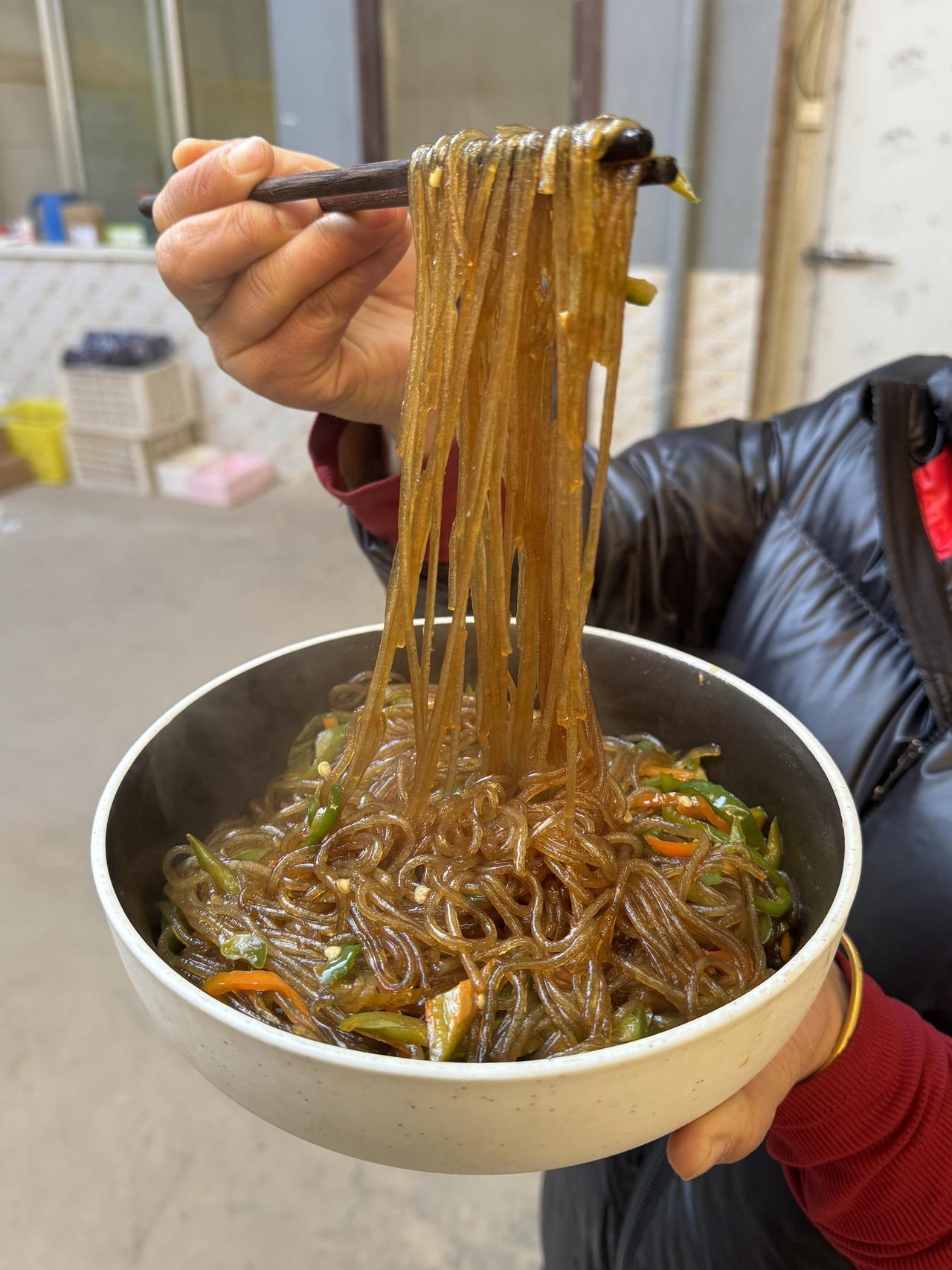 无论是炒着吃的肉沫粉条 还是煮着吃的酸辣粉 用这个纯红薯粉条做出来的口感就是好 光滑柔软细腻劲道 一点点硬芯都没有,吃起来很柔顺 手工做的的粉条,吸汁率很高,味道十足! 红薯粉条