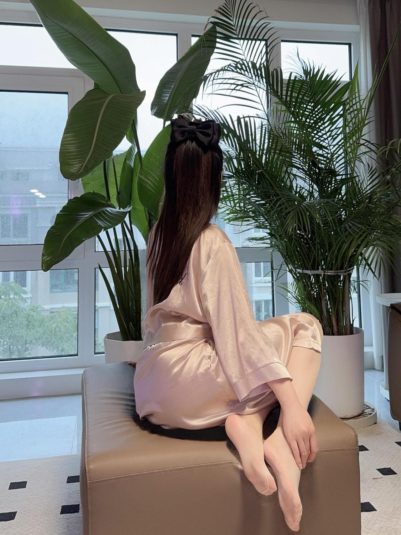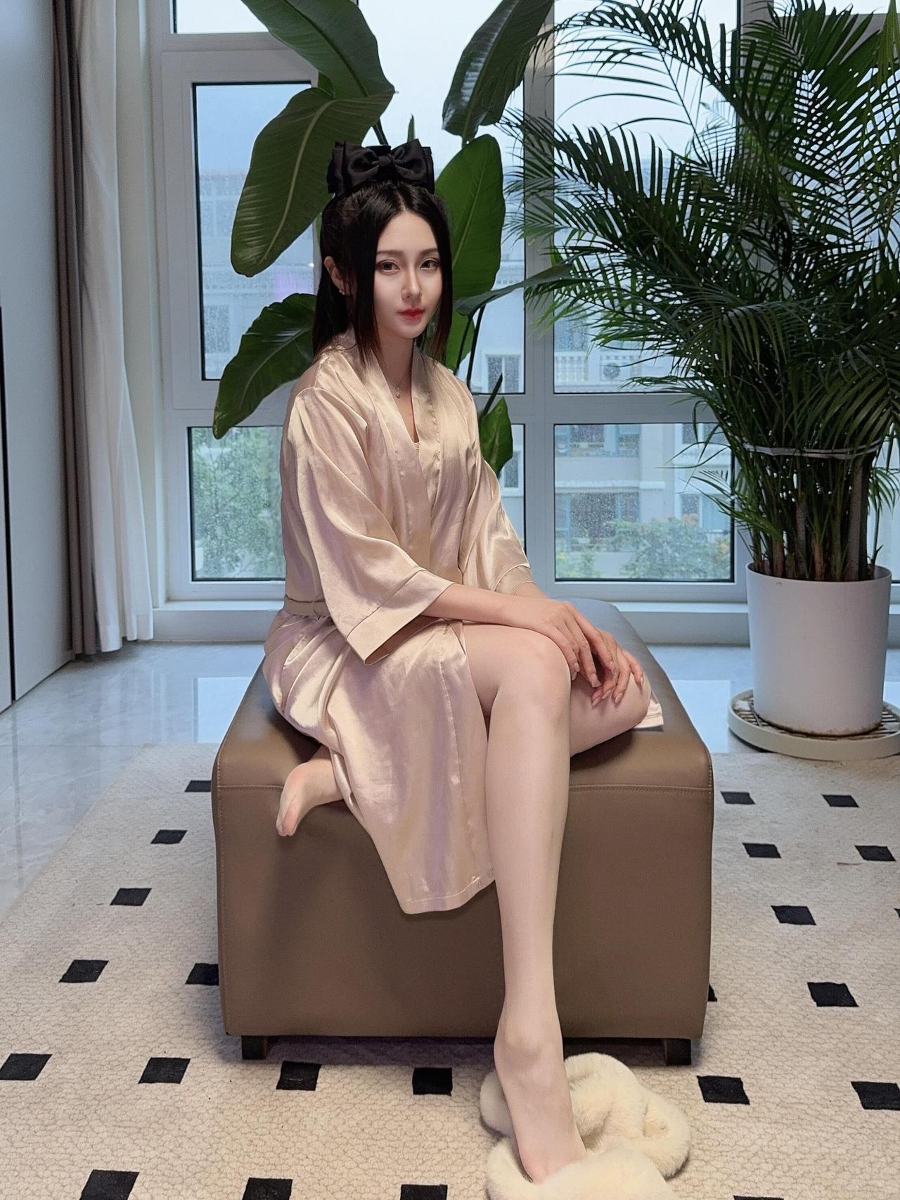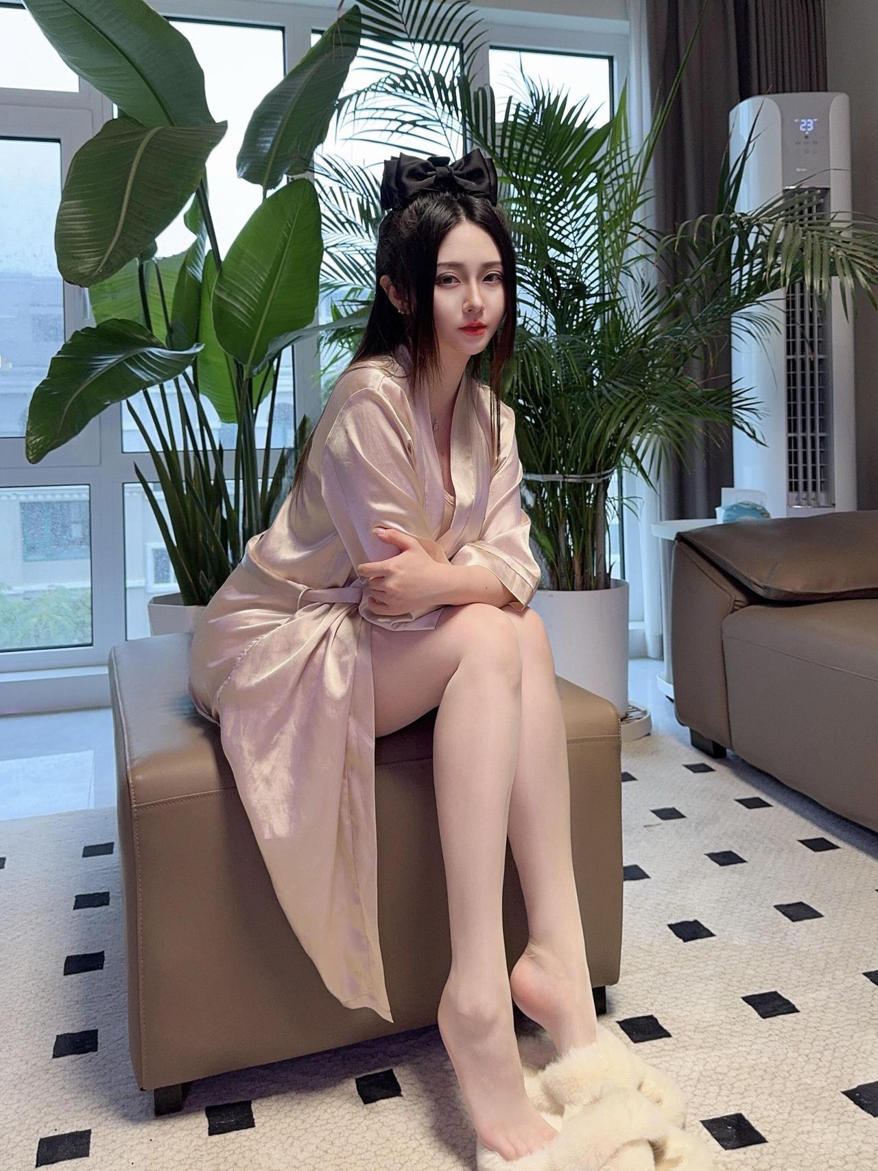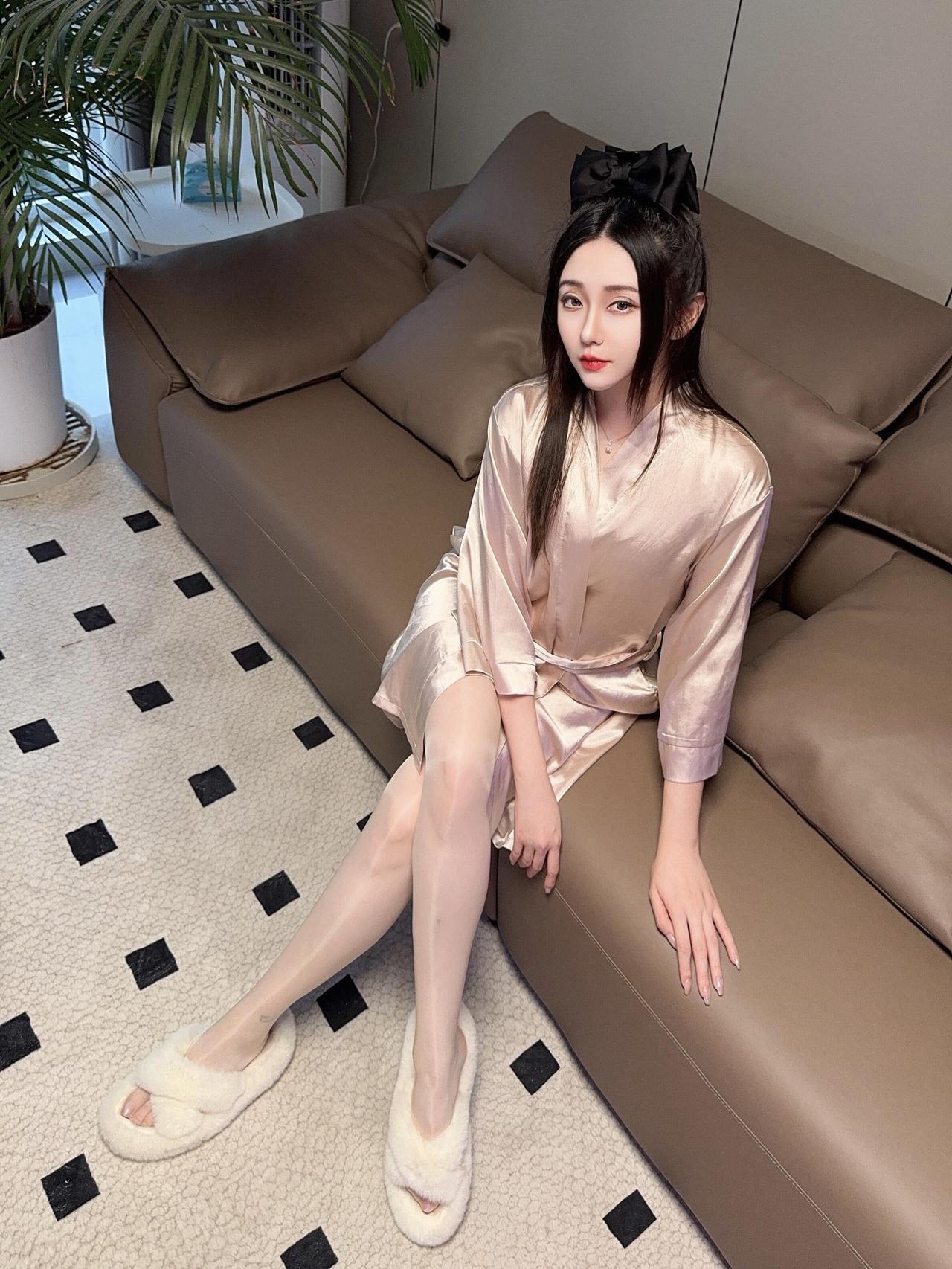 居家慵懒风,丝质睡衣与毛绒拖鞋的完美搭配! 居家毛绒拖鞋 毛绒拖鞋穿搭 居家凉