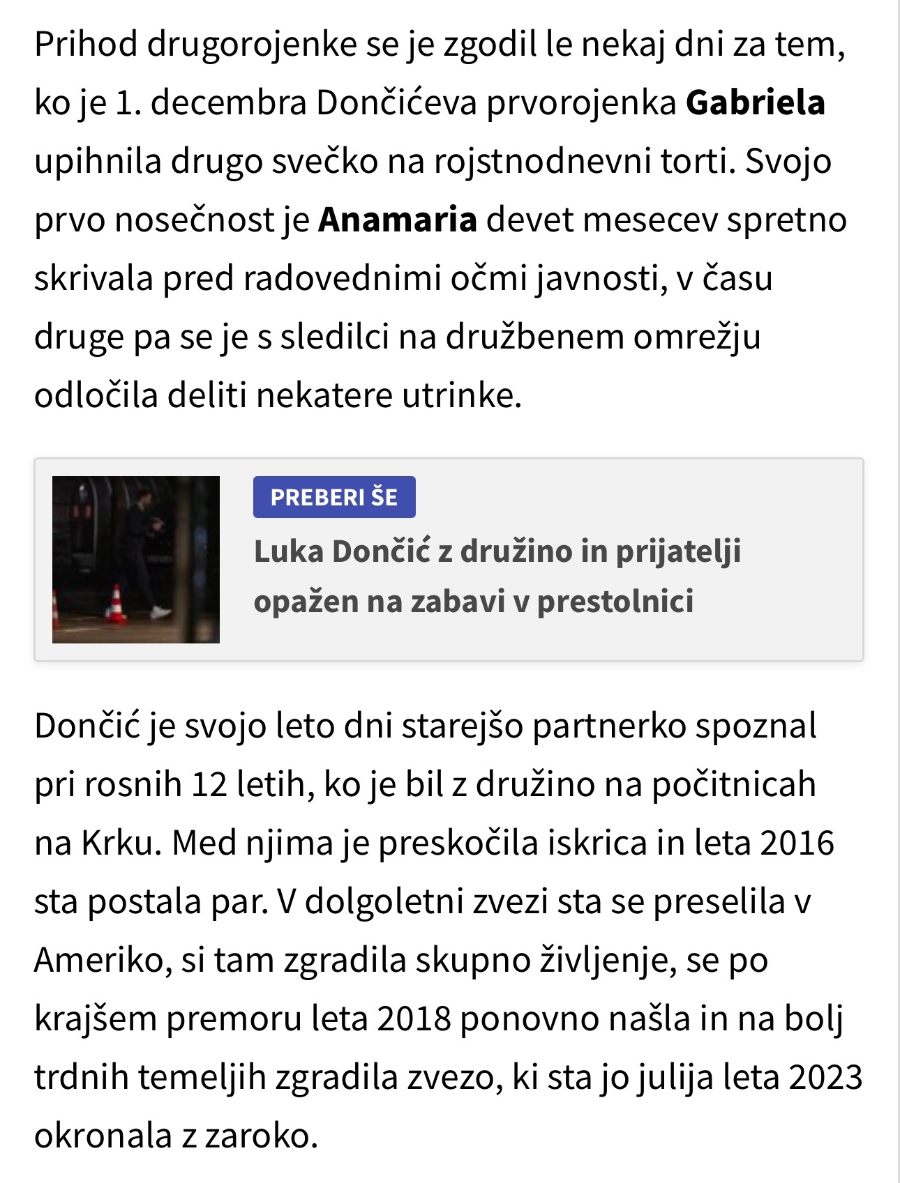 斯洛文尼亚当地媒体:东契奇已经乘坐私人飞机返回美国。东契奇日前因个人原因缺席了对阵猛龙队的比赛,他回到斯洛文尼亚与未婚妻阿纳玛丽亚·戈尔特斯迎来了第二个女儿的降生。这位26岁的球星在卢布尔雅那的一家场馆内,与家人和朋友一同庆祝了这个喜讯,如今他已动身前往洛杉矶,后续的工作事务正在那里等待着他。二女儿的降生,距离12月1日东契奇的大女儿加布丽埃拉吹灭两岁生日蛋糕上的第二根蜡烛仅过去几天。阿纳玛丽亚在第一次怀孕时,曾巧妙地向好奇的公众隐瞒了九个月的身孕;而这一次怀二胎,她选择在社交媒体上与粉丝分享了一些孕期片段。东契奇在12岁那年,与家人在克尔克岛度假时结识了比他大一岁的女友(阿纳玛丽亚)。两人一见钟情,于2016年正式成为情侣。在这段长久的恋情里,他们移居美国共同生活,2018年短暂分手又再度复合,感情基础变得更加稳固,并在2023年7月订婚。