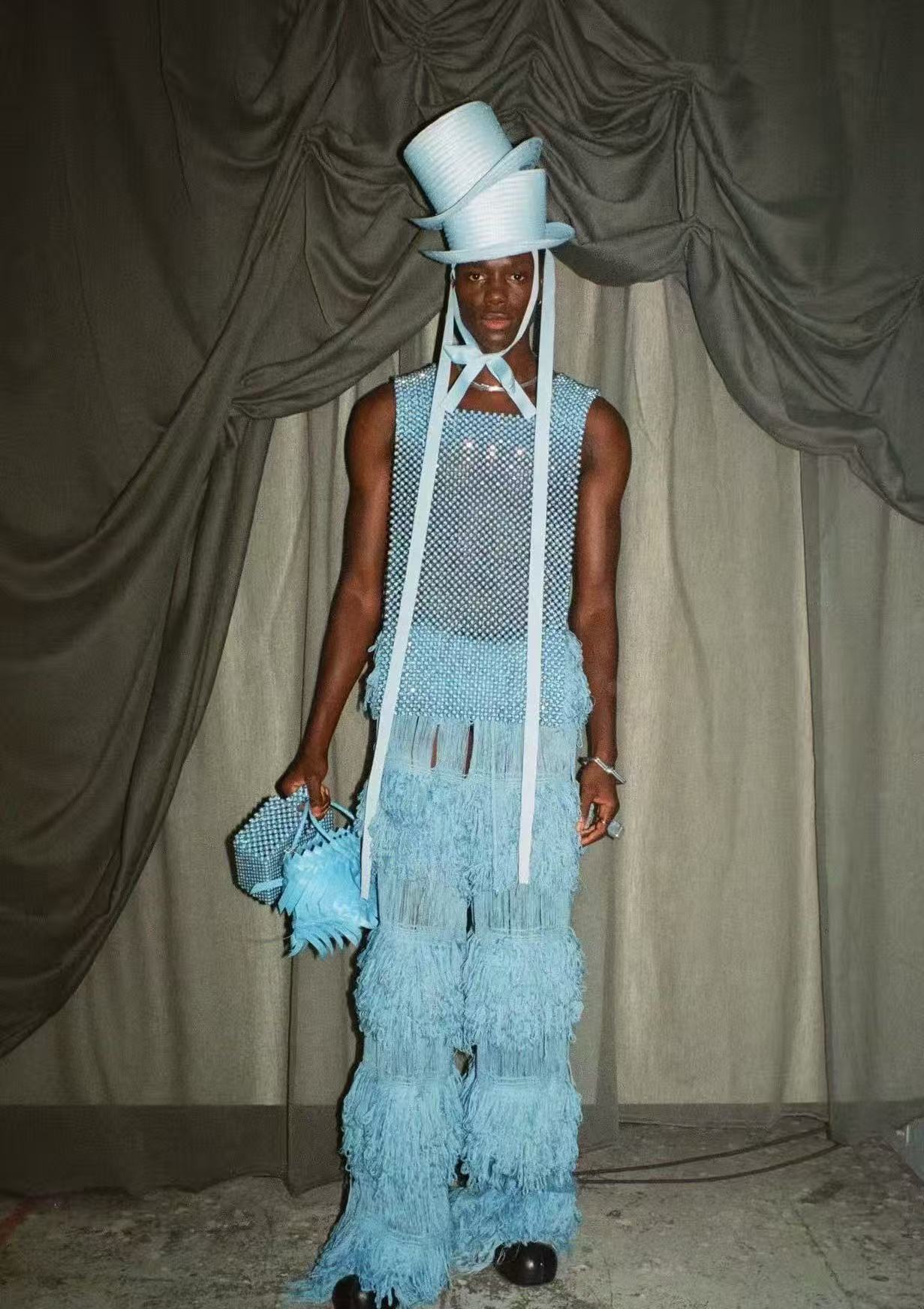 刘雨昕|2025爱奇艺尖叫之夜 雨昕今晚的第二套造型释出!演绎了来自尼日利亚设计师品牌IAMISIGO 2026春季系列的流苏裤装,于舞台光影间步履生风,垂坠流苏随节奏摇曳,与冷冽烟熏妆碰撞出锐利不羁的先锋气场~尖叫之夜出图尖叫之夜内场