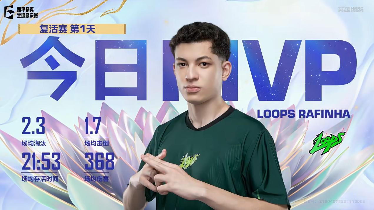 虎扑12月06日讯2025和平精英全球总决赛,LOOPS战队的RAFINHA选手获得复活赛首日MVP。