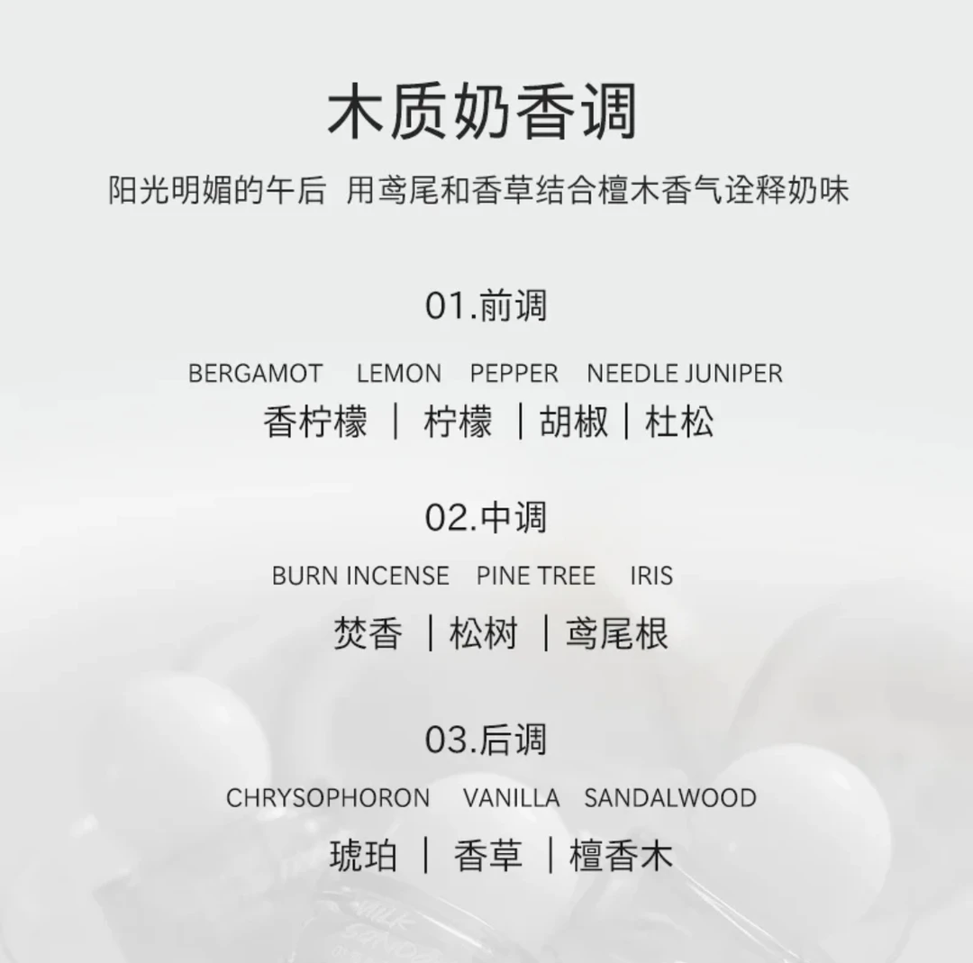 刷到的的香水NOW MATTER . 01奶木香 就包含了这两种植物的精油,可以一次性带来双重体验,此外还有冬柠檬和香柠檬精油的加持,使它的气味温润而舒适,非常适合女生去使用,使用方法也非常简单,内衣锁骨发丝都可以喷一点,奶呼呼的!会让人一整天都有好心情!