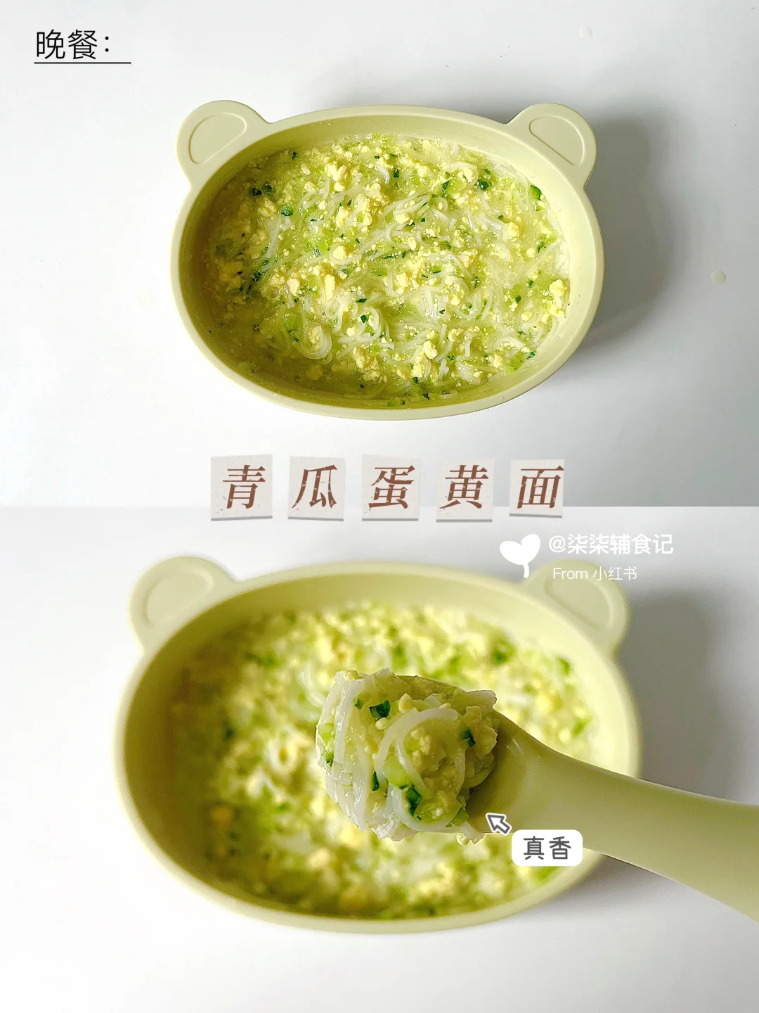 👧:8个月➕13天 🍽️:下午水果:橙子🍊 ⏰:晚餐19:00 🥣:青瓜蛋黄面 📝:碎碎面12g➕青瓜➕蛋黄 麻腮风第五天~一切如常👍。 中午回老家吃饭,宝宝就没给她煮辅食啦,米糊泡泡吃了,没拍照嘿嘿!下午水果火龙果咬咬乐吃了两份。 晚餐吃青瓜蛋黄面还有紫薯米粉蒸糕,蒸糕吃了2条,面全部吃光光啦,饭后喝了40ml水。 ⚠️食材分量根据宝宝的食量添加。 ⚠️食材大小根据宝宝的咀嚼能力处理。