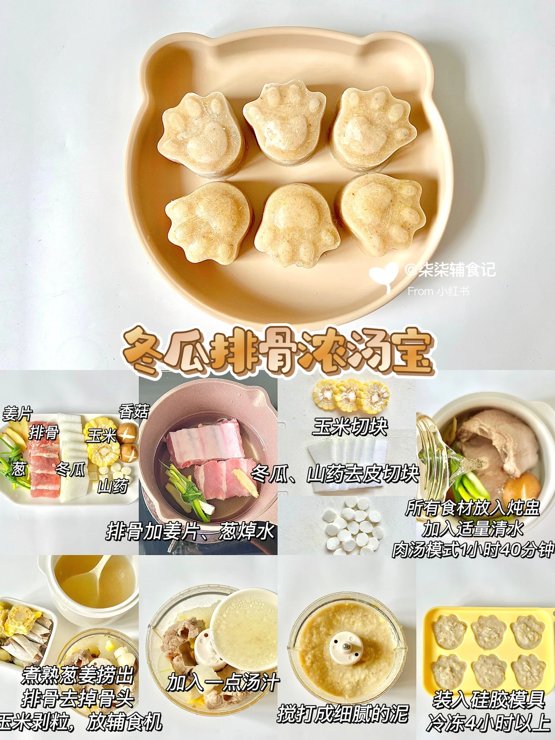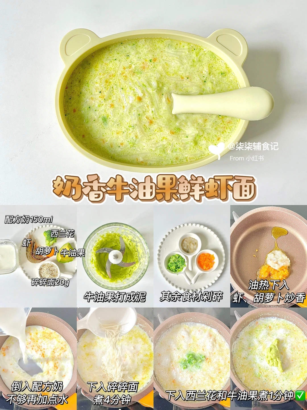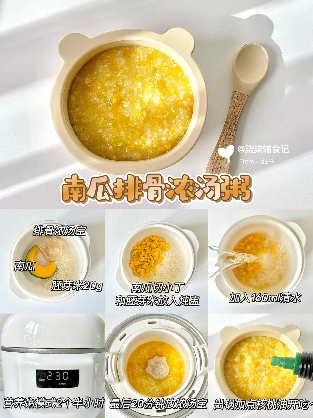 👧:10个月➕29天 ⏰:午餐11:00 🥣:奶香牛油果鲜虾面、三文鱼蒸蛋 🍽️:水果:梨🍐 ⏰:晚餐18:00 🥣:南瓜排骨浓汤粥 午餐奶香牛油果浓汤面和三文鱼蒸蛋,柒柒把一整个蒸蛋都吃光了~面还剩一点点,午餐差点就光盘了,好腻害好腻害~ 鸡蛋用的比较大,加80ml水刚好,小一点的鸡蛋加60ml就够啦! 晚餐南瓜排骨浓汤粥,又做了浓汤宝嘿嘿😁太省妈了~ ⚠️食材分量根据宝宝的食量添加。 ⚠️食材大小根据宝宝的咀嚼能力处理。