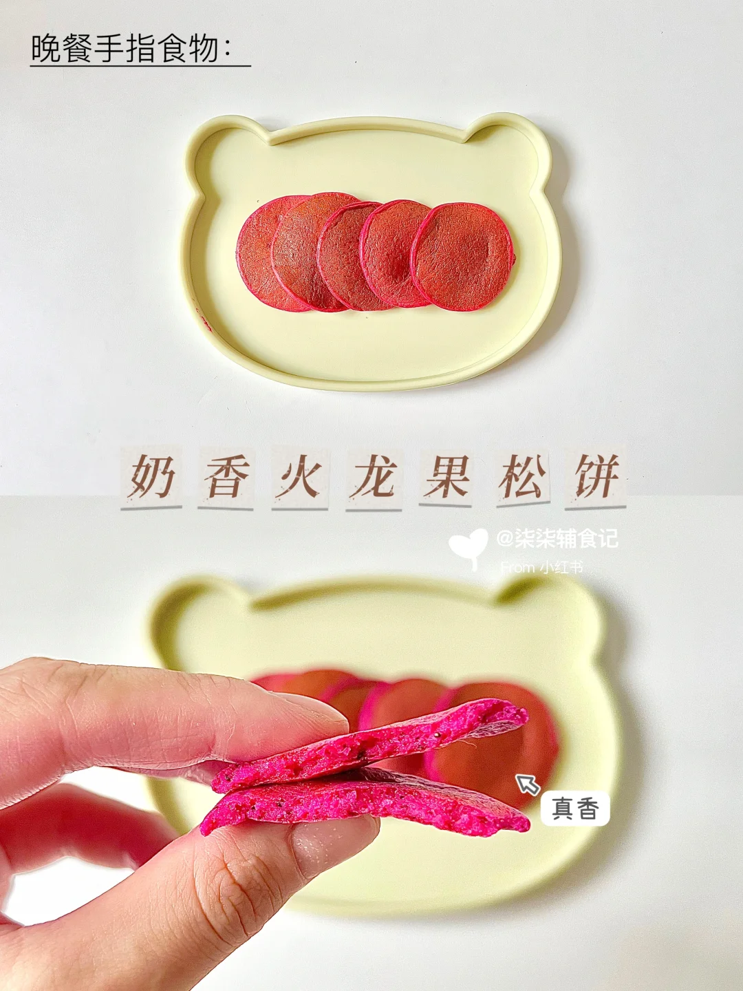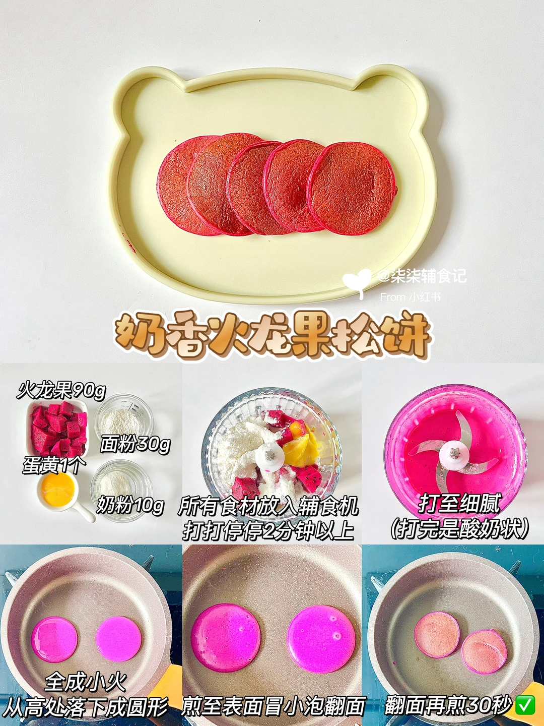 火龙果90g➕低筋面粉30g➕奶粉10g➕蛋黄1个