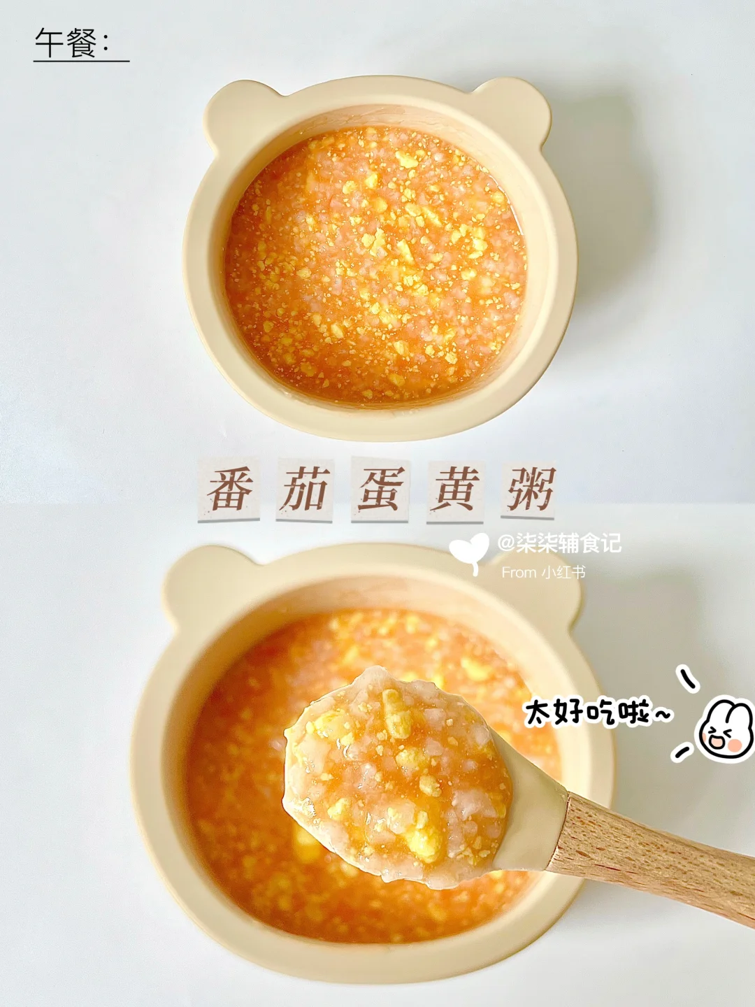 中午吃番茄蛋黄粥,十倍粥煮完再加入番茄泥中一起煮2分钟就可以出锅啦,出锅再加入蛋黄碎,香迷糊啦~柒柒就剩下一点点🤏没吃完,饭后喝了50ml水。