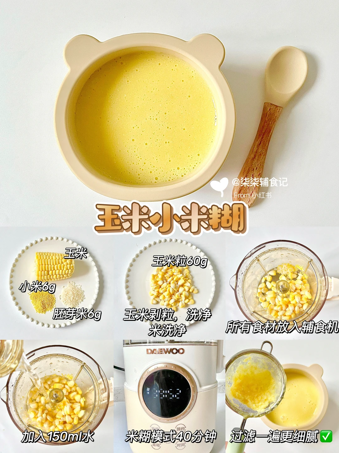 📝:黄小米6g➕胚芽米6g➕60g玉米粒