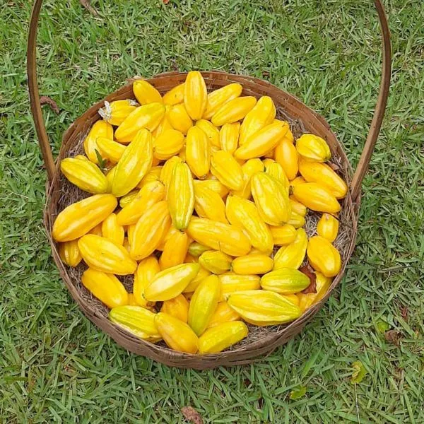 这种物种非常罕见,直到最近才被发现。原产于巴西,它有长长的果实,看起来像伸展的香蕉。据说味道很甜,有点像百香果。可能是一种非常令人兴奋的浆果,但在种植中大多是看不见的。