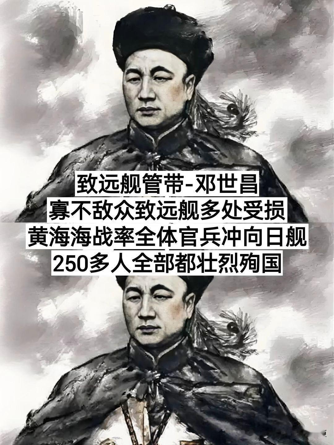 黄海忠魂照千秋——邓世昌与致远舰的甲午壮歌 邓世昌(1849-1894),广东番禺人,福州船政学堂首届优等毕业生。值得一提的是,他虽未获得赴英留学的机会,却始终以自强之心弥补差距。 1877年清政府首次选派船政学堂学生留英深造时,正值海防吃紧,日本对台湾、澎湖虎视眈眈,邓世昌因肩负扼守海疆要塞、主持舰船训练的重任,被留任国内履职,成为当时紧缺的带船骨干;同时,彼时留英名额多向福建籍学生倾斜,作为少数广东籍学员的他,未能获得定向留学资格。 虽无缘留洋,邓世昌却抓住两次赴英接舰的契机潜心精进:1881年、1887年,他先后奉命赴英接收“扬威”“致远”等巡洋舰,在英停留期间(分别约4个月、1个多月),深入考察西方海军先进战术与舰船技术,将所学融入日常训练,使“致远”舰成为北洋水师中航速快、战力强的主力巡洋舰之一。入仕后,邓世昌历任多艘舰船管带,以治军严格、作战勇猛著称,始终坚守“舰存与存,舰亡与亡”的信念,多次率舰执行海防巡逻任务,为保卫海疆恪尽职守。 1894年9月17日,甲午黄海海战爆发。日军舰队凭借舰船机动性优势,对北洋水师阵列发起猛烈攻击,旗舰“定远”号遭日军集中火力打击,形势危急。此时,邓世昌指挥“致远”舰毅然冲出己方阵列,全速驶向“定远”前方,以舰体为旗舰挡弹,瞬间成为日军重点攻击目标。 “致远”舰虽火力较强、航速突出,但防护能力逊于铁甲舰,在日军密集炮火下迅速中弹起火,舰体逐渐倾斜。危急关头,邓世昌见日军旗舰“吉野”号嚣张跋扈,毅然下令:“倭舰专恃吉野,苟沉此舰,足以夺其气而成事!”随后亲自操舵,开足马力冲向“吉野”,欲与敌同归于尽。 然而,在冲击途中,“致远”舰不幸被日军鱼雷击中,舰体迅速沉没。落水后的邓世昌拒绝随从抛来的救生圈,爱犬“太阳”衔住其手臂施救,他忍痛推开爱犬,怀抱“与舰共存亡”的信念,壮烈殉国,年仅45岁。 致远舰沉没后,其残骸长期沉睡于辽宁丹东大鹿岛海域。1938年,侵华日军打捞舰船残骸时,潜水员在密封驾驶舱内发现一具身着管带级别官服的骨架及“致远”铜制名牌,当地村民认定为邓世昌遗骸,将其安葬于大鹿岛山腰,世代缅怀。
