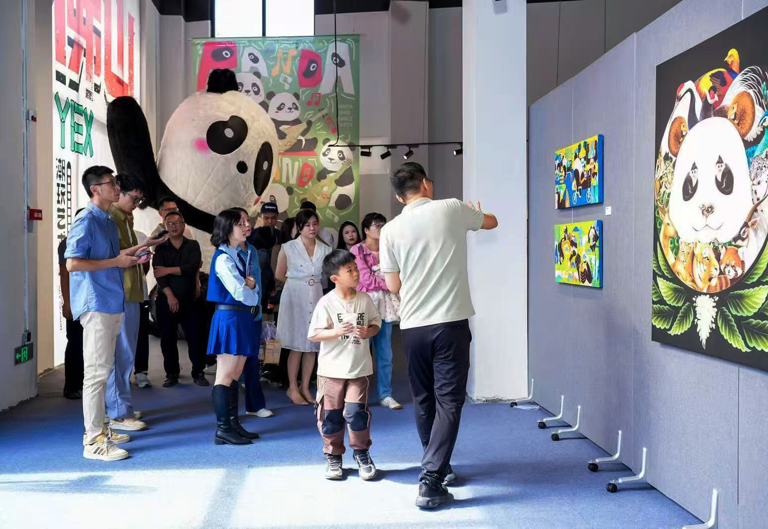 作为本届潮玩艺术季的活动,“给佛山一个熊抱——全球熊猫主题插画大赛精选作品展”迎来佛山首秀。展厅汇集来自全球77位插画家的优秀作品,这些作品不仅在内容上涵盖“水墨国宝”“未来想象”“自然环境”等多个维度,也在风格上展现出丰富多样的艺术表达——从传统东方意蕴到当代视觉探索,从温情叙事到先锋实验,每一幅插画都是创作者对熊猫形象的全新诠释,也是对人与自然和谐共生的深情礼赞。主办方负责人介绍,该作品展此前已成功举办三届,已在北京、深圳、桂林等城市巡展,旨在通过全球插画师的原创力量,以熊猫为主题开展国际创意对话,用创意插画讲好熊猫故事,让熊猫以更多创意形式走向世界。