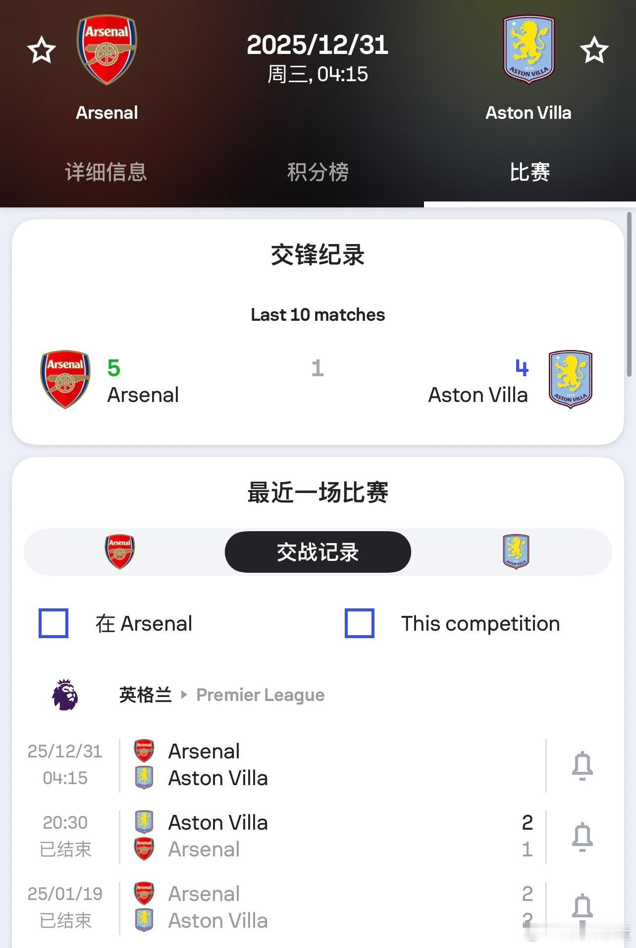 另一个有趣的数据。阿森纳本赛季第二次让对手的预期进球超过1个,维拉今天达到2.27,非常高了。上一次则是对曼联那场。谁能想到,阿森纳最厚实的防线位置,最近也开始人手紧张。对阿森纳来说还有一个鬼故事。25天之后,也就是今年的最后一天,他们还要再踢维拉阿斯顿维拉vs阿森纳阿斯顿维拉2比1阿森纳英超联赛