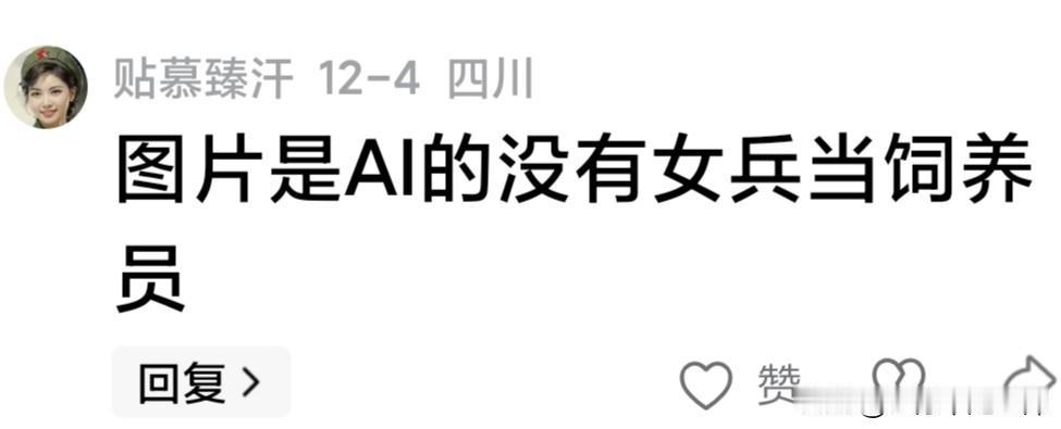 部队有没有女兵养猪的(饲养员)?前几天,笔者发一帖子,配了一张一位穿65式军装女兵在猪圈喂猪的图片(图2),评论区有网友说图片是A|的,没有女兵当饲养员。 首先声明一下,笔者发布的所有作品配图从来没有使用过A|,有的是实拍原创,有的是网搜图片。闲话不多扯,还是言归正传,聊一聊部队有没有女兵当饲养员这个话题。 女兵有没有当饲养员的?肯定有啊,这有什么好稀奇的,为什么女兵不可以当饲养员?看到过这样一篇报道,福建原一八六医院,有一位叫亚力的女兵,16岁当兵,穿上军装没有在练兵场上摸爬滚打,却当了一名猪倌。干一行爱一行,虽然亚力在饲养员岗位只干了一年(后调护训班学习),但工作兢兢业业,干得非常出色,不仅被吸收为共青团员,还获得上级嘉奖。 不要说什么女兵没有当饲养员的,巾帼不让须眉,男兵能吃的苦,女兵也能吃,男兵能干的事,女兵同样可以干。女舰艇兵、女飞行员、女航天员……,哪个岗位没有女军人?