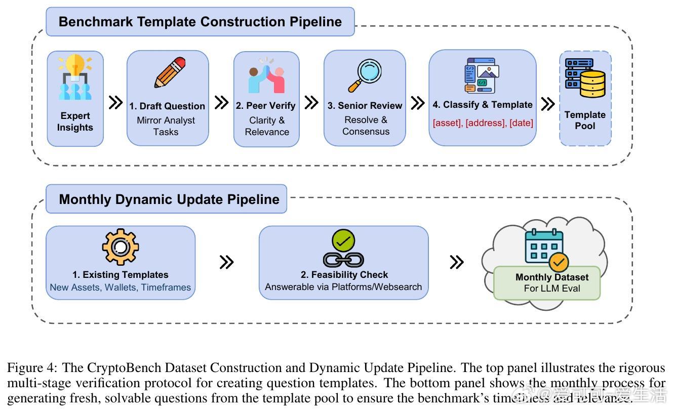 [CL]《CryptoBench: A Dynamic Benchmark for Expert-Level Evaluation of LLM Agents in Cryptocurrency》J Guo, S Huang, Z Yao, Y Zhang... [Princeton University] (2025) 在加密货币领域,专业分析需求极端的时效性、多源数据综合与预测能力,传统通用LLM评测难以满足。本文提出了首个针对加密专业场景的动态评测基准——CryptoBench。CryptoBench由资深加密分析师团队设计,每月更新50道题,涵盖“简单检索”、“复杂检索”、“简单预测”与“复杂预测”四大任务象限,真实复刻分析师日常工作流程。评测要求模型不仅能快速准确地检索链上和DeFi实时数据,还需进行多源信息融合与未来趋势预测。实验涵盖10款顶尖LLM(包括Grok-4系列、GPT-5、Claude 4.5等),在直接问答与智能代理框架下测试。结果揭示了显著的“检索-预测不平衡”——大部分模型在信息查找上表现出色,但在预测推理任务上严重不足,甚至出现虚假推断和信息陈旧等问题。这表明当前模型更像高效搜索引擎,而非真正的金融分析师。此外,代理框架的引入改变了模型表现排名,暗示模型原始智能与实际工具协同能力存在差异。失败案例分析显示,模型常犯的错误包括:优先非权威来源、依赖过时数据、数据整合错误及预测幻觉。CryptoBench强调专家级金融分析的独特挑战:极端的时间敏感性、对抗性环境及复杂多样数据的实时整合。它不仅是衡量LLM在加密领域实际能力的重要工具,也指明了未来发展方向——需要构建专门面向预测推理和实时动态数据的领域模型与复杂代理系统。全文详见:arxiv.org/abs/2512.00417