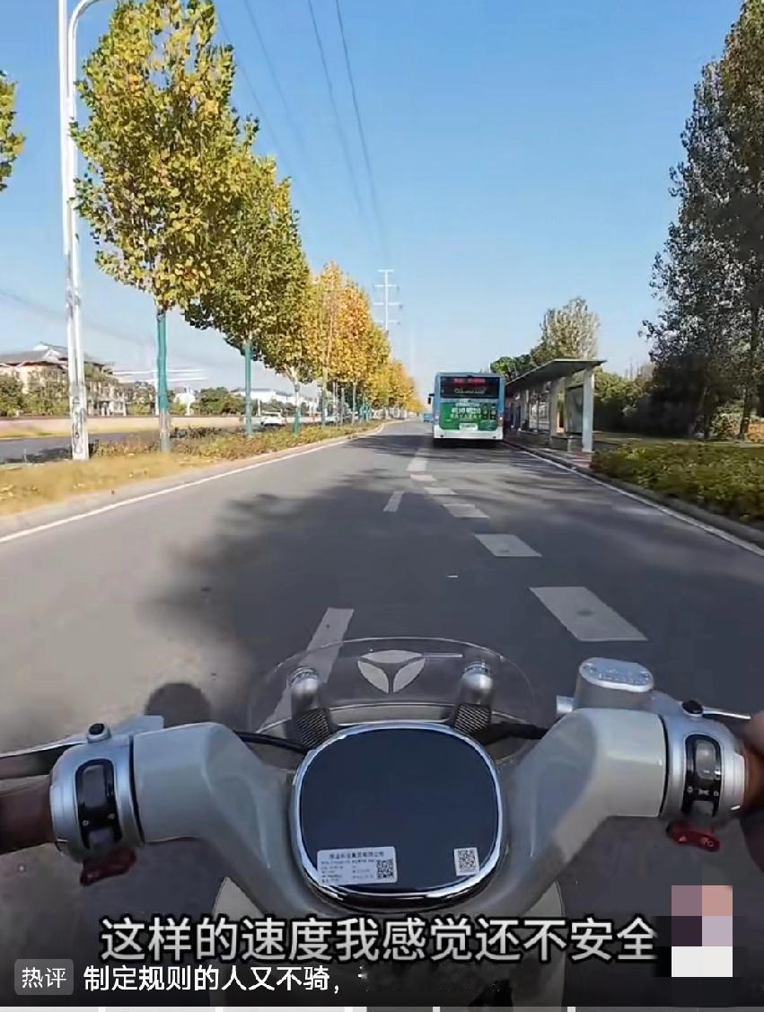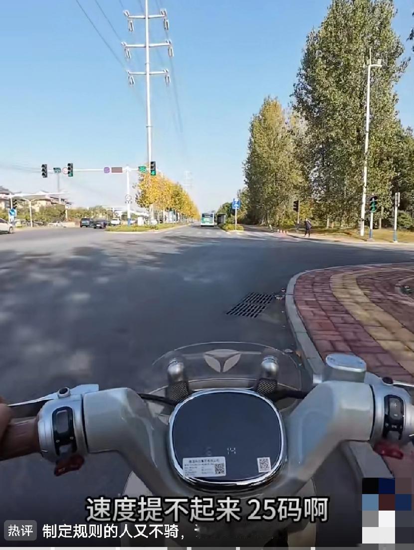 安徽池州,网友试骑新新国标电动车之后的感受。这位网友对这款新新国标电动车最大的槽点就是速度只能拉到25码,爬稍微坡度大一点的坡就爬不上来了,要下车推。还有就是限速25码,反倒不安全,因为不能超车了…… 我猜第一个站出来反对这种新新国标电动车的肯定是外卖员,还有就是在家带娃上下学、买菜做饭的这些个女的,因为他们用电动车的频率是最大的,毕竟谁都不想把无谓的时间都浪费在路上! 大家怎么看?