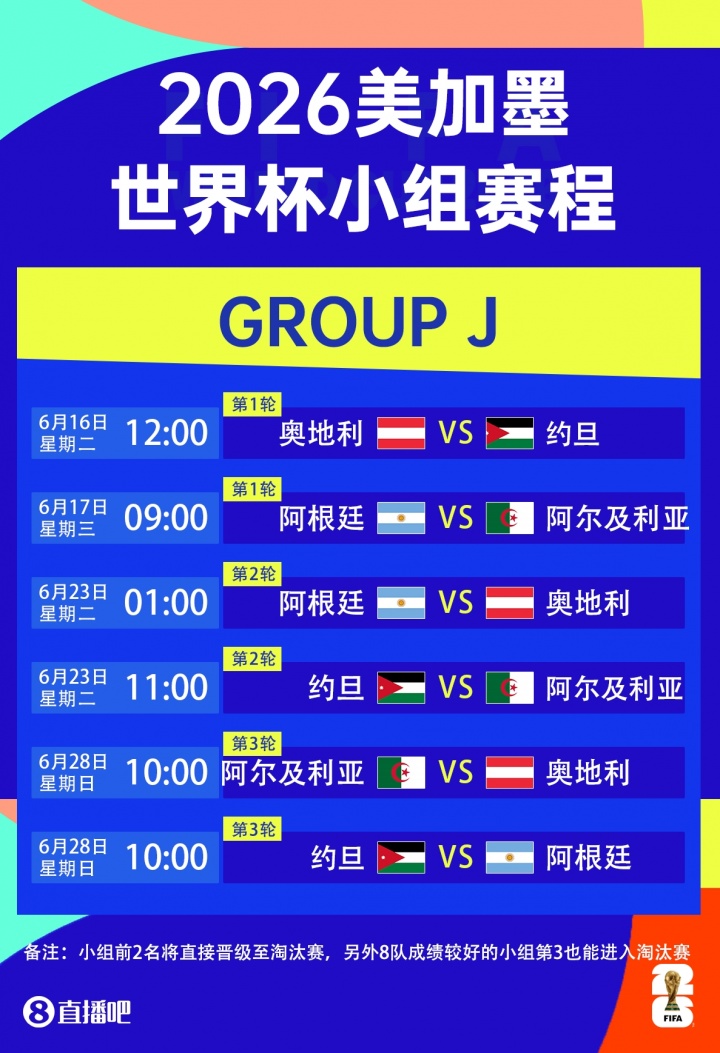 2026世界杯赛程公布,J组赛程确定,阿根廷首战6月17日09:00开打。