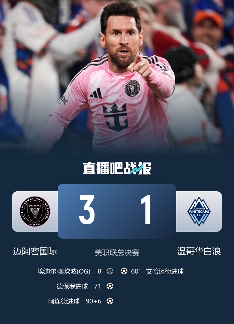 迈阿密国际3-1击败温哥华白浪!队史首夺美职联总冠军!梅西夺得个人生涯第47座冠军!